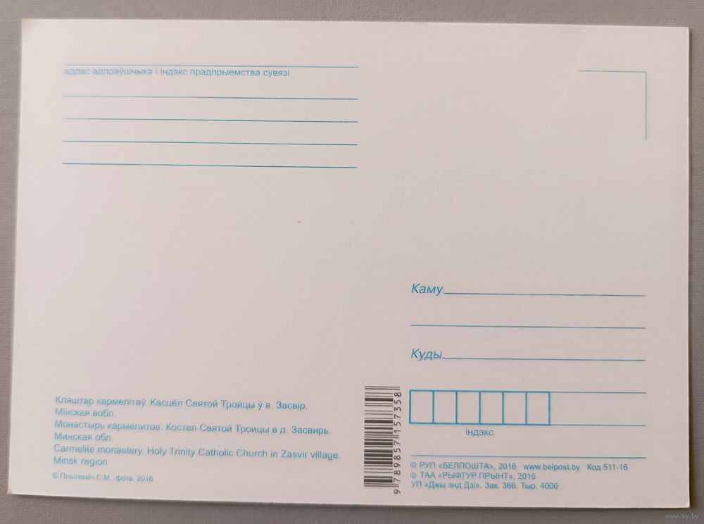 Серия "Планета Беларусь". Монастырь кармелитов. Костел Святой Троицы. Открытка, глянец