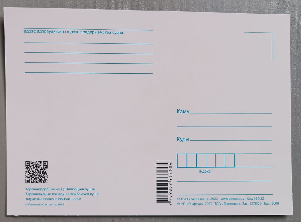 Серия "Планета Беларусь". Тарпановидные лошади. Фауна. Открытка, глянец