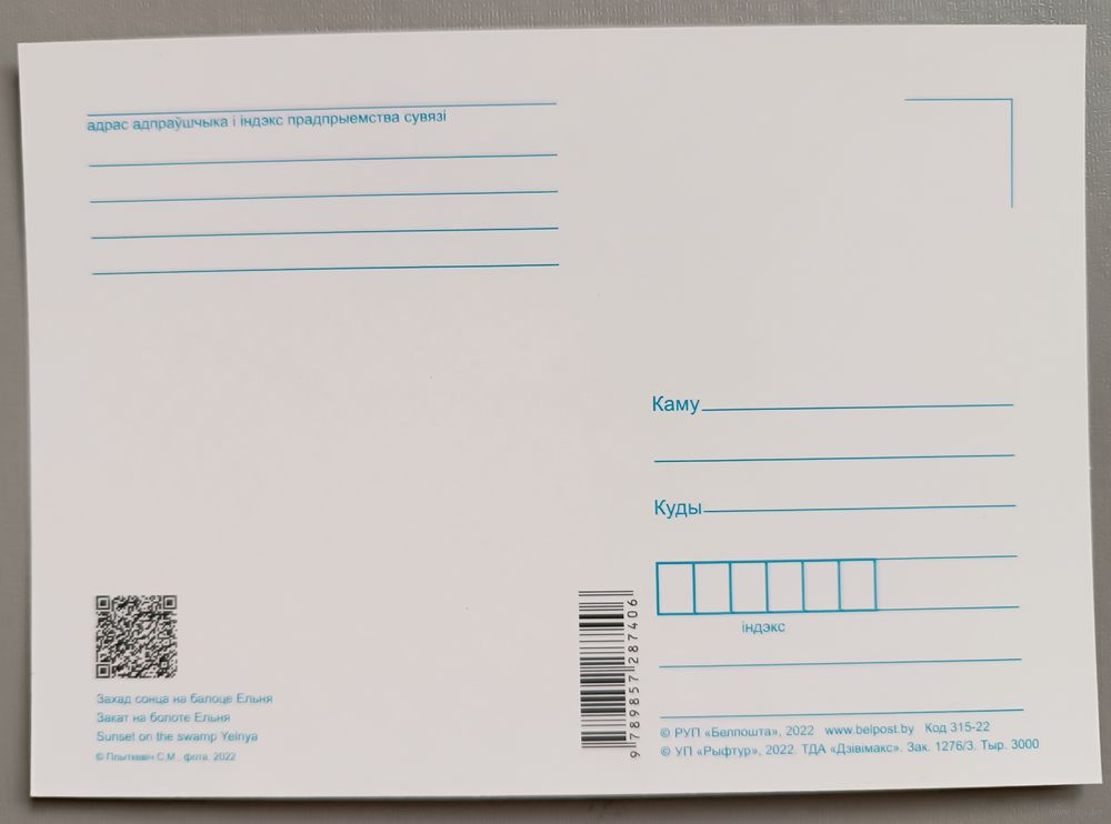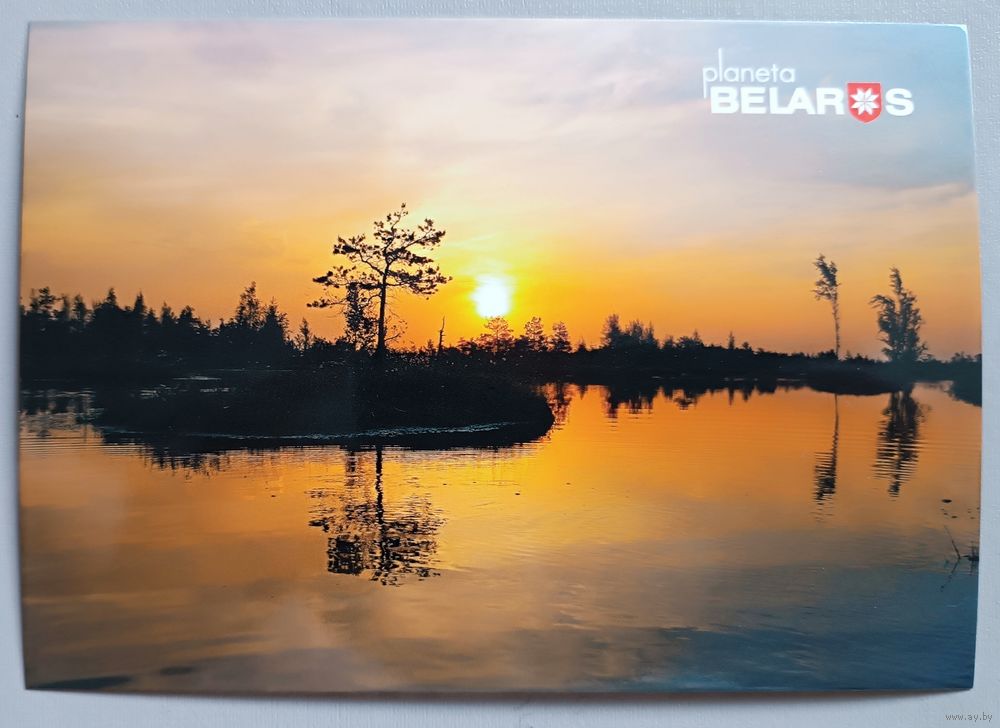 Серия "Планета Беларусь". Закат на болоте Ельня. Открытка, глянец