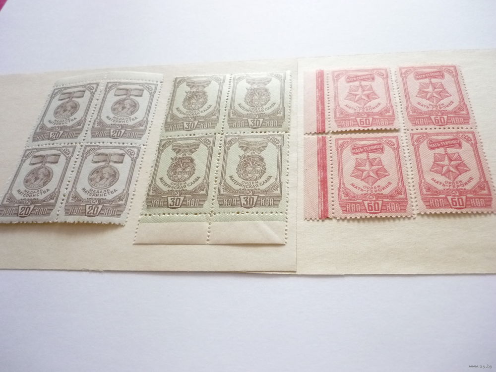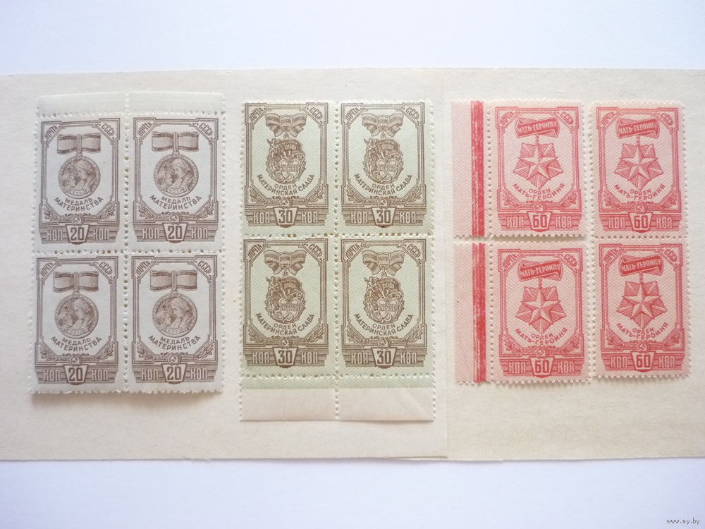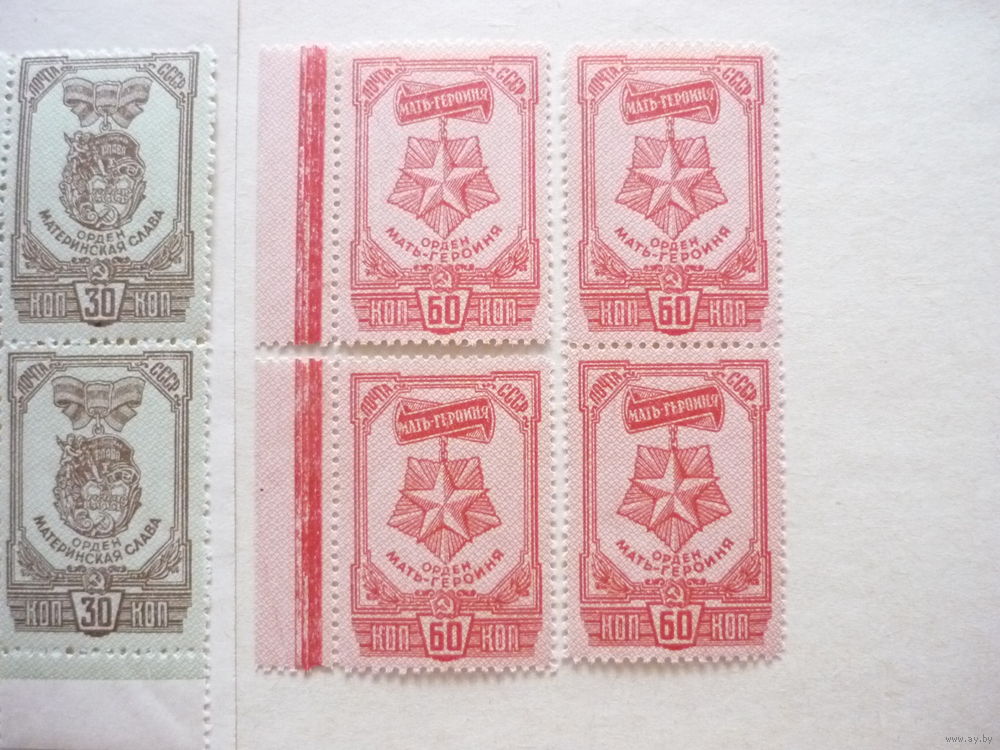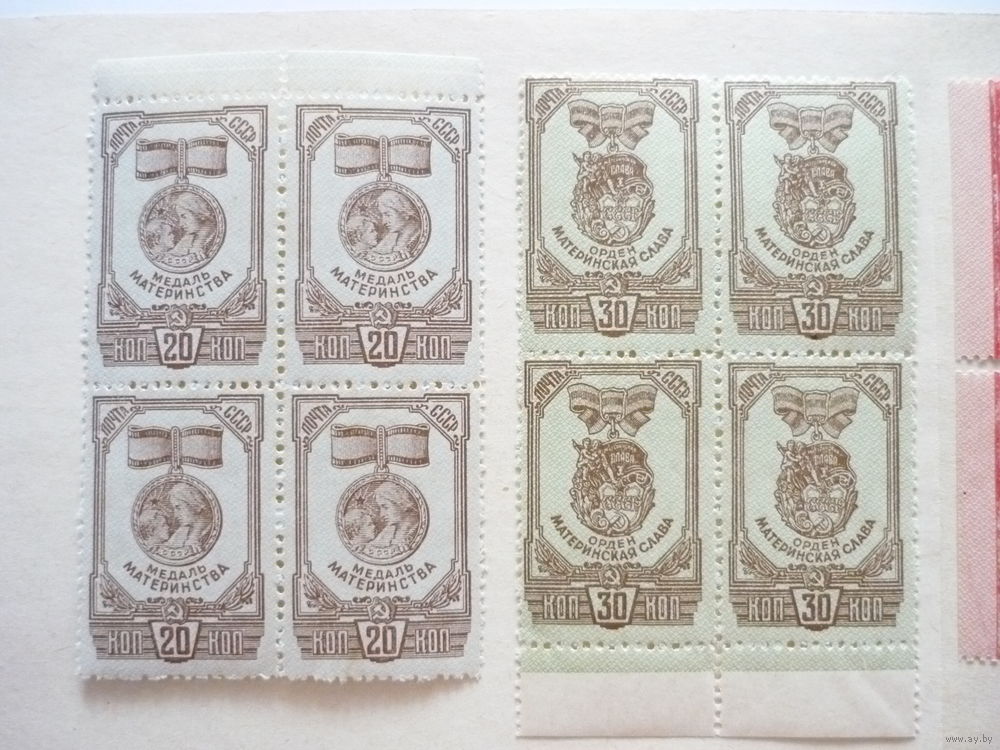 Для аукциона предлагается cерия в квартблоках и сцепках марок СССР 1945 гг.! Чистые (MNH **)! По тематике: Ордена и медаль материнства. С полями. Состояние. Материал из коллекции! Торги с 1 рубля без МЦ! Кварты в отличном состоянии ( MNH **), с клеем (смотреть на фото). Гарантия продавца. Последний кварт разделен на 2 марки и дубль-сцепку(смотреть на фото). Все фото сделаны без фотовспышки при дневном свете.