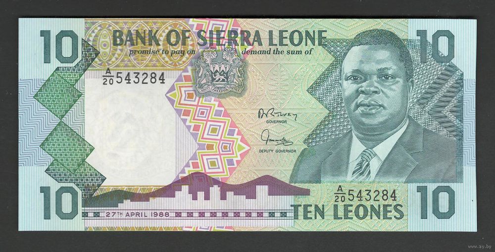 Сьерра-Леоне 10 леоне 1988 года. Тип Р-15. Состояние UNC