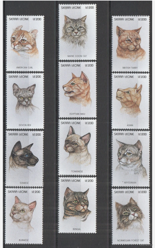 СЬЕРРА-ЛЕОНЕ ФАУНА ДОМАШНИЕ ЖИВОТНЫЕ КОШКИ MNH