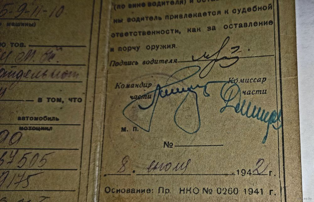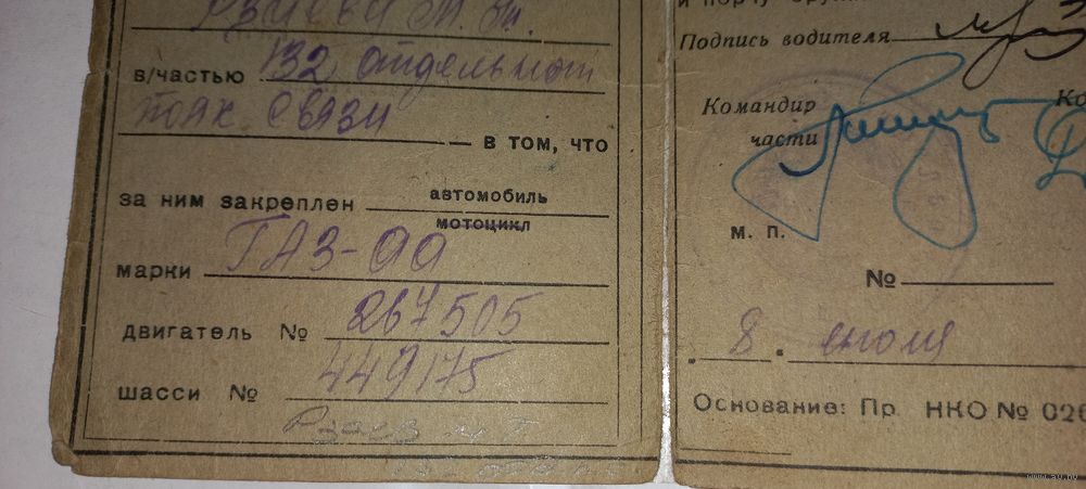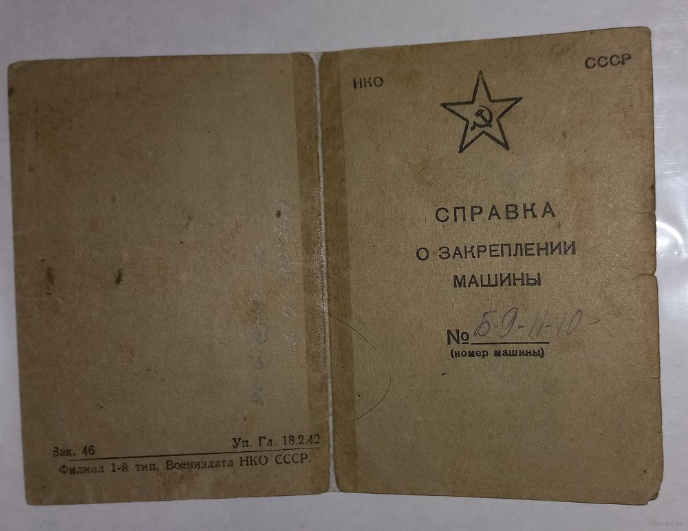 сертификат РККА на автомобиль ГАЗ АА 1942 (А47)