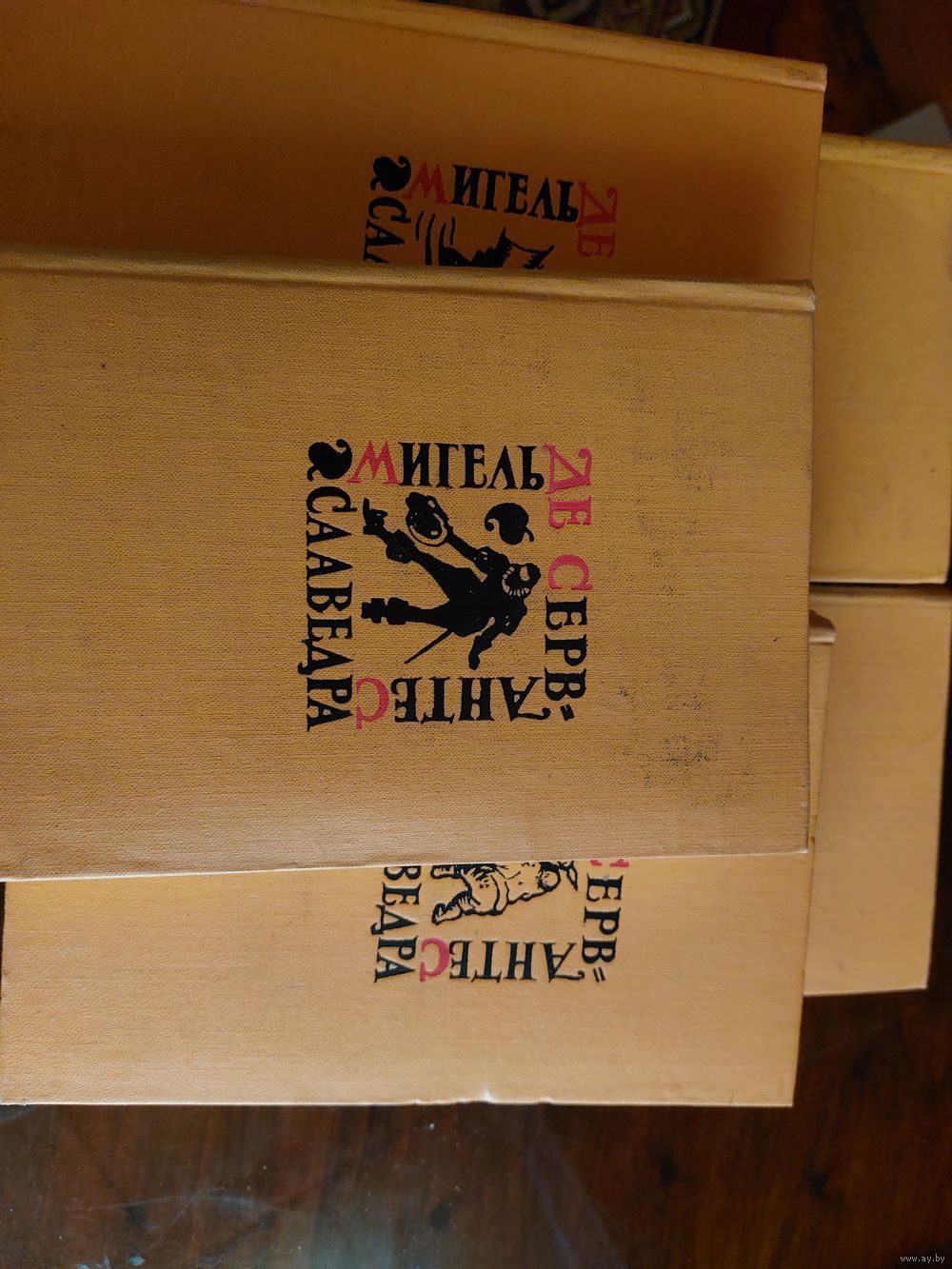 СОДЕРЖАНИЕ : Том 1. Дон Кихот Ламанчский, часть 1. Том 2. Дон Кихот Ламанчский, часть 2. Том 3. Назидательные новеллы: Пролог к читателю. Посвящение дону Педро Фернандесу де Кастро. Посвятительные стихи. Цыганочка. Великодушный поклонник. Ринконете и Кортадильо. Английская испанка. Лиценциат Видриера. Сила крови. Ревнивый эстремадурец. Высокородная судомойка. Две девицы. Сеньора Корнелия. Том 4. Назидательные новеллы: Обманная свадьба. Новелла о беседе собак. Подставная тетка. Послание к Матео Васкесу. Галатея. Путешествие на Парнас. Драматические произведения: К читателю. Нумансия. Интермедии. Саламанкская пещера. Театр чудес. Два болтуна. Ревнивый старик. Судья по бракоразводным процессам. Бискаец–самозванец. Избрание алькальдов в Дагансо. Бдительный старик. Вдовый мошенник, именуемый Трампагос. Том 5. Странствия Персилеса и Сигизмунды.