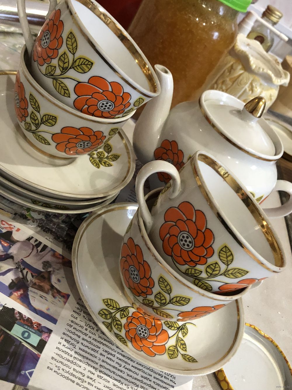 В хорошем состоянии без сколов и трещин. Тернопольский фарфоровый з-д Украина 70-е гг. СССР. В отличном состоянии , с серванта: 4 чашки и 4 тарелки, чайник. Почта/европочта.