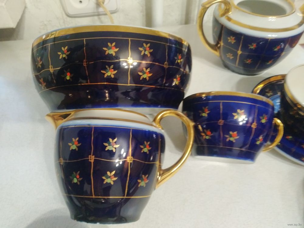 Коллекционный чайный сервиз «Золотая сетка» Фарфор Кобальт Позолота. Крайне редкий!