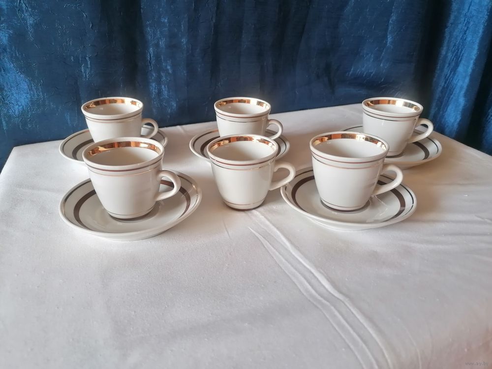 6 чашек, 5 блюдцев, кофейни, сахарница