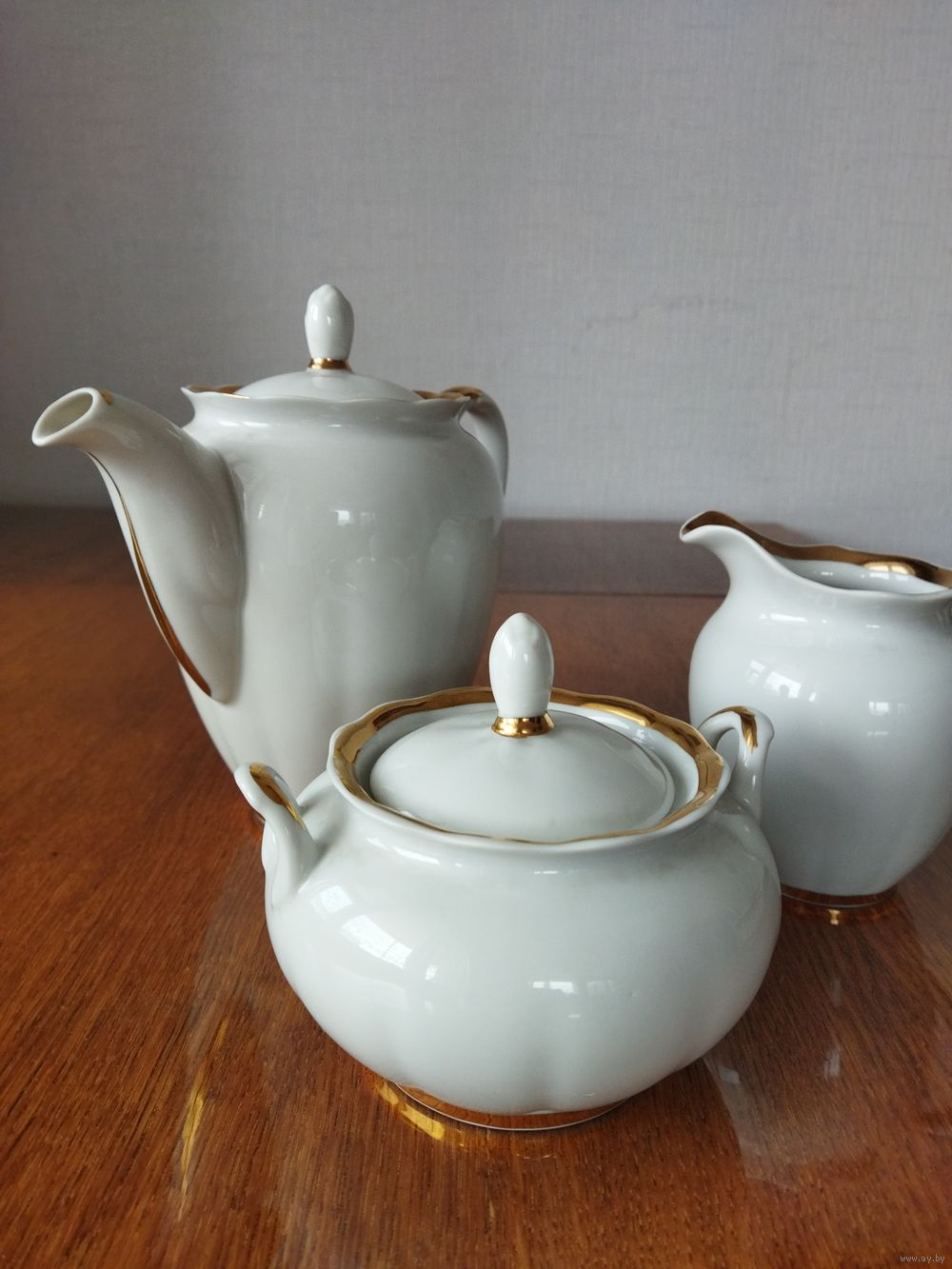 Сервиз на 6 персон завода Вербилки времён СССР. На одной из чашек есть трещина (см фото). В остальном сервиз в отличном состоянии. Коллекция Золотая лента. Тончайший фарфор (см фото чашки на просвет)