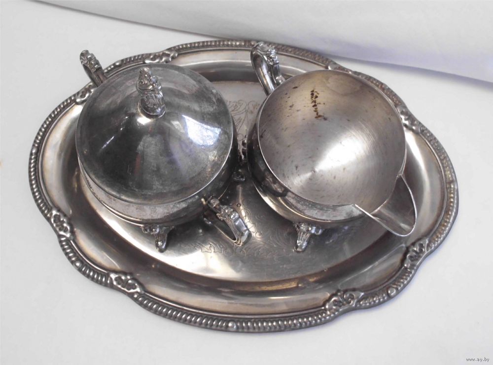 Кофейный набор 3 предмета (сливочник и сахарница на подносе).