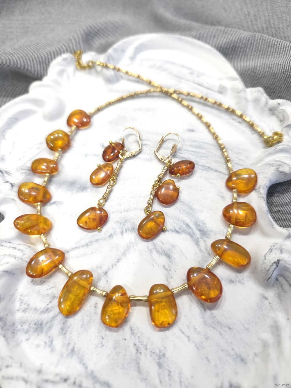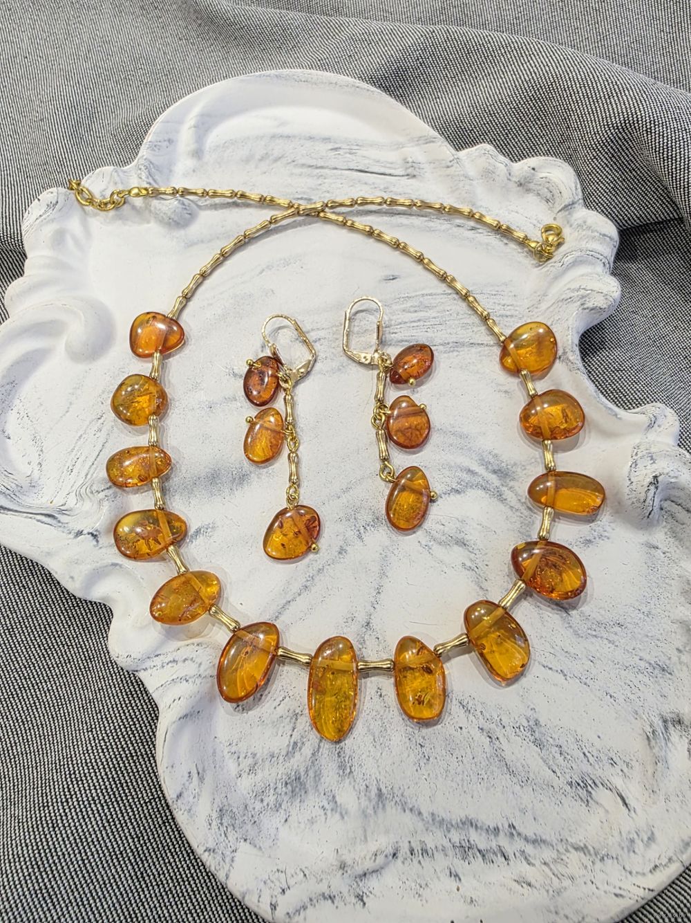 Красивый сочный набор из натурального янтаря медового оттенка.