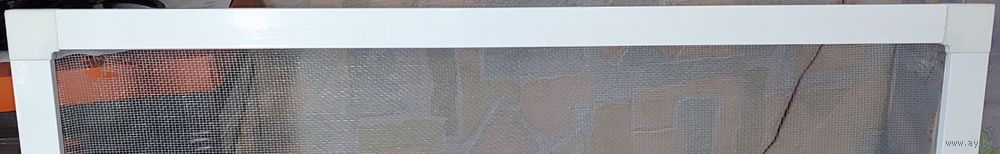 Москитная сетка в сборе: рама, сетка с ручками, шнур-фиксатор. Есть два небольших дефекта (сетка разошлась) в двух из углов (фото №4-6). Рама и ручки - белые, сетка и шнур - серые