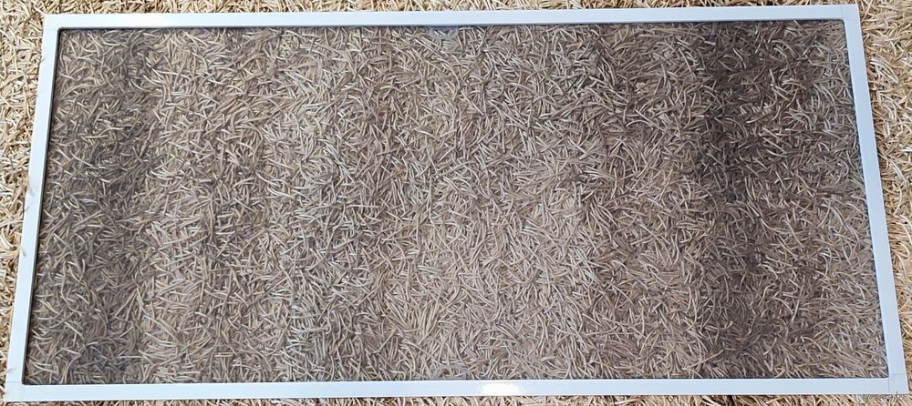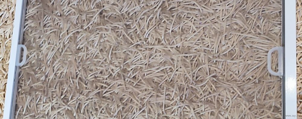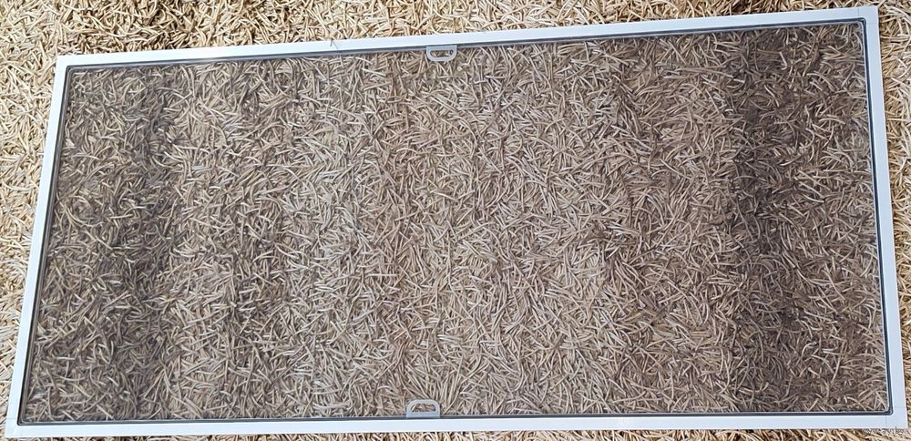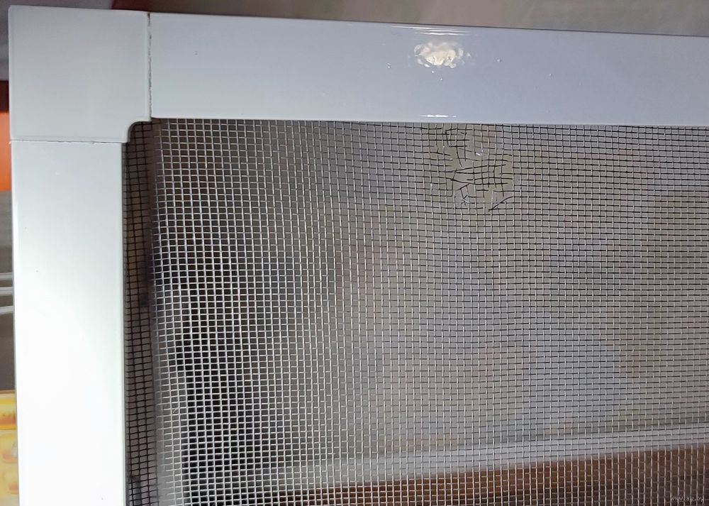 Москитная сетка в сборе: рама, сетка с ручками, шнур-фиксатор. Есть небольшой дефект (сетка разошлась) в одном из углов (фото №4). Рама и ручки - белые, сетка и шнур - серые