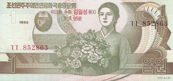 Северная Корея 1 вона образца 1992 годаUNC p49 Юбилей Ким Ир Сена