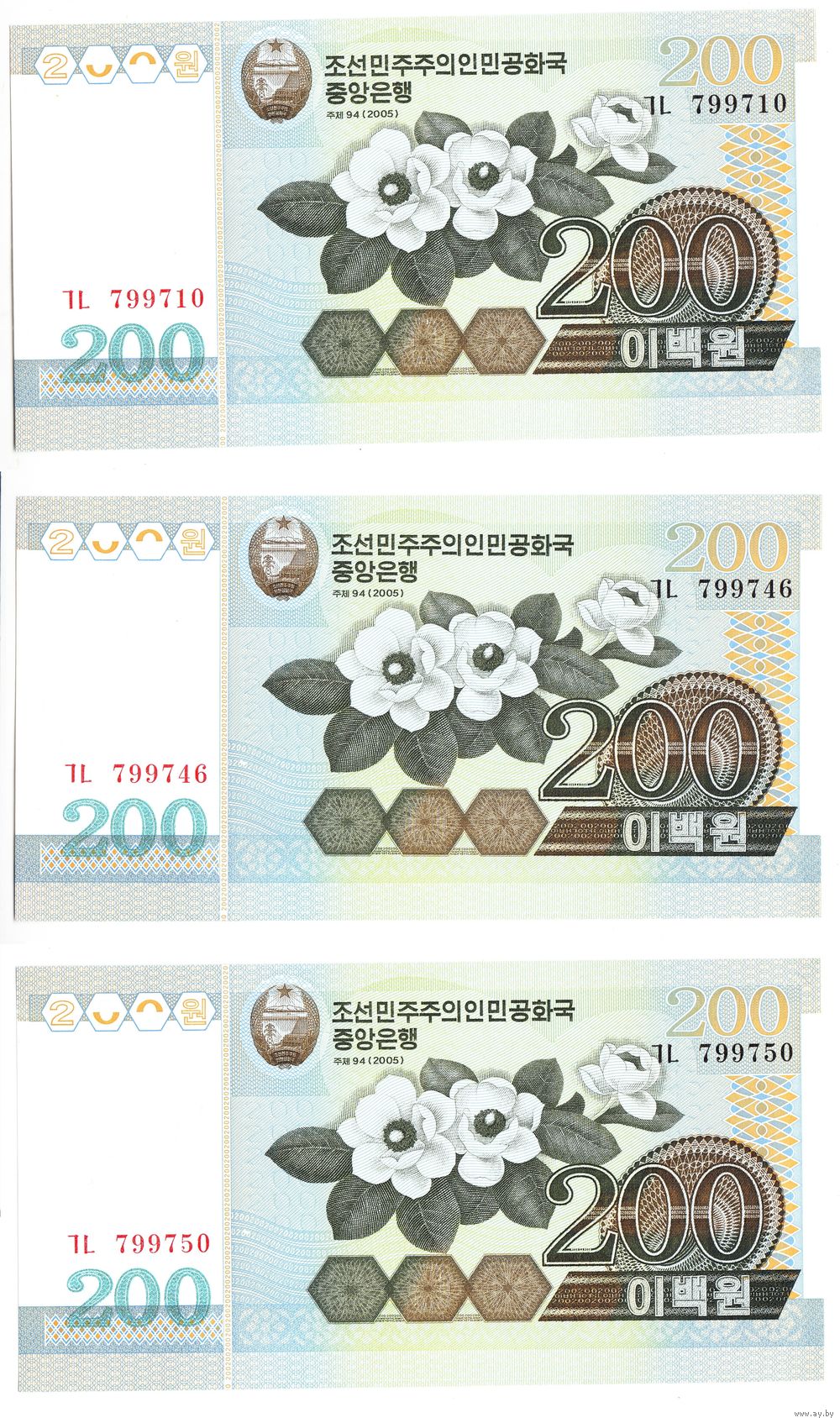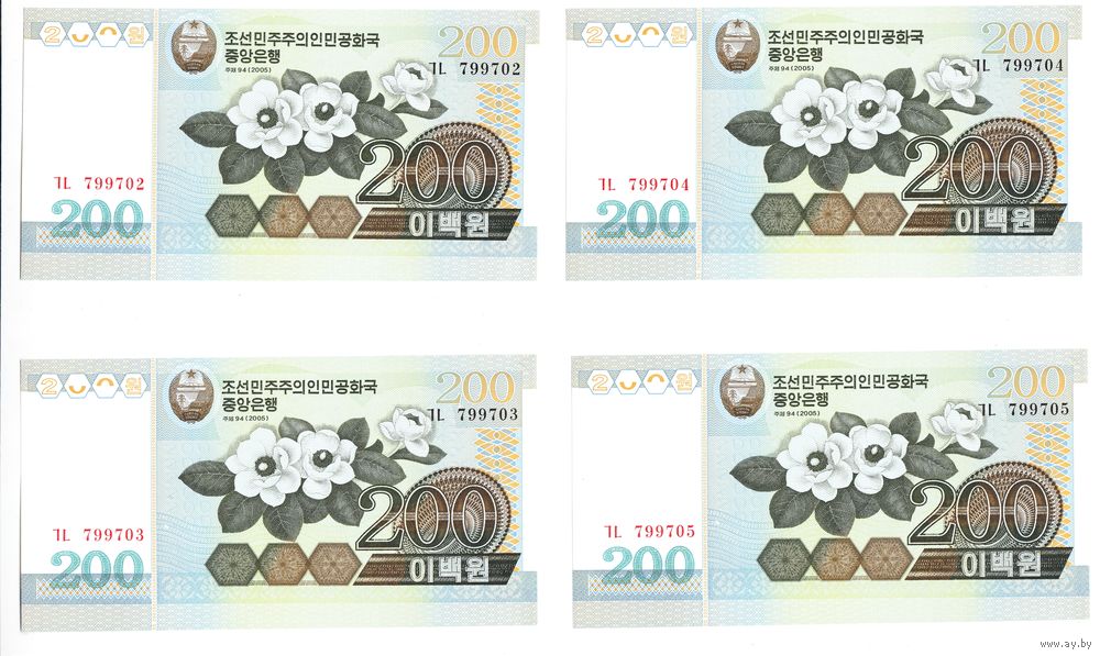 Северная Корея 200 вон 2005 год