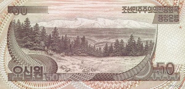 Северная Корея 50 вон образца 1992 года UNC p52 Юбилей Ким Ир Сена