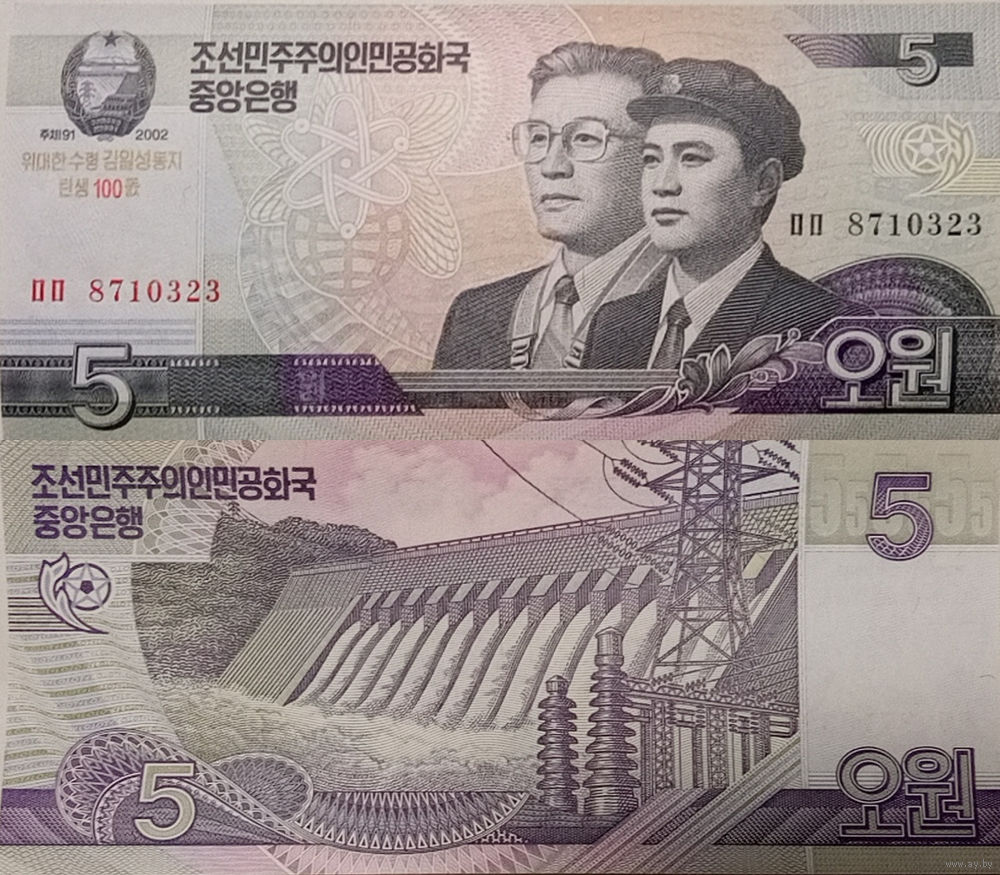 Северная Корея. КНДР 5 Вон 2012 "100 лет Ким Ир Сену" UNC П2-203