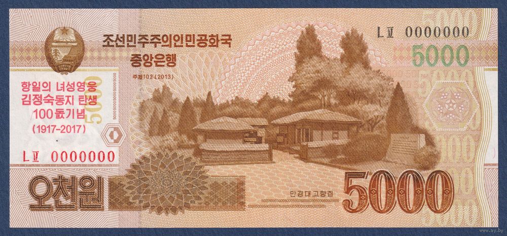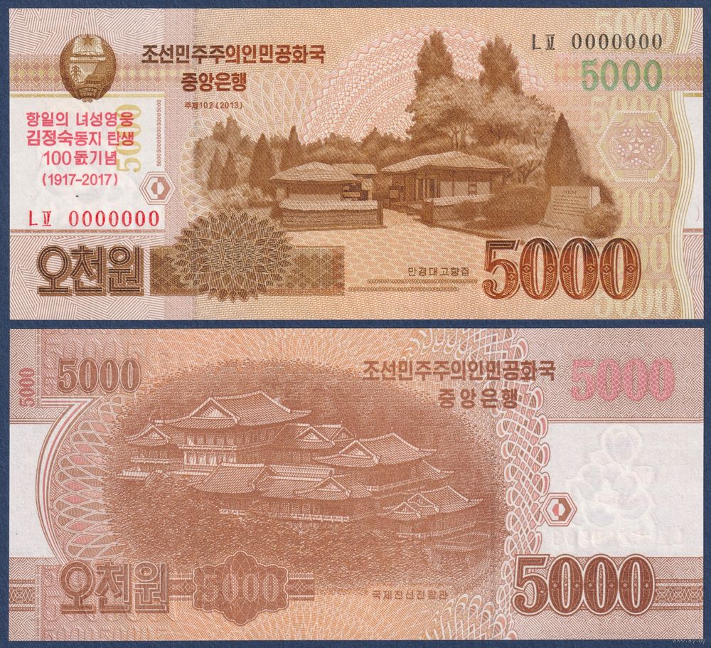 Северная Корея (КНДР), 5000 вон 2013 (2017) г., P-CS20S (памятная, образец), UNC