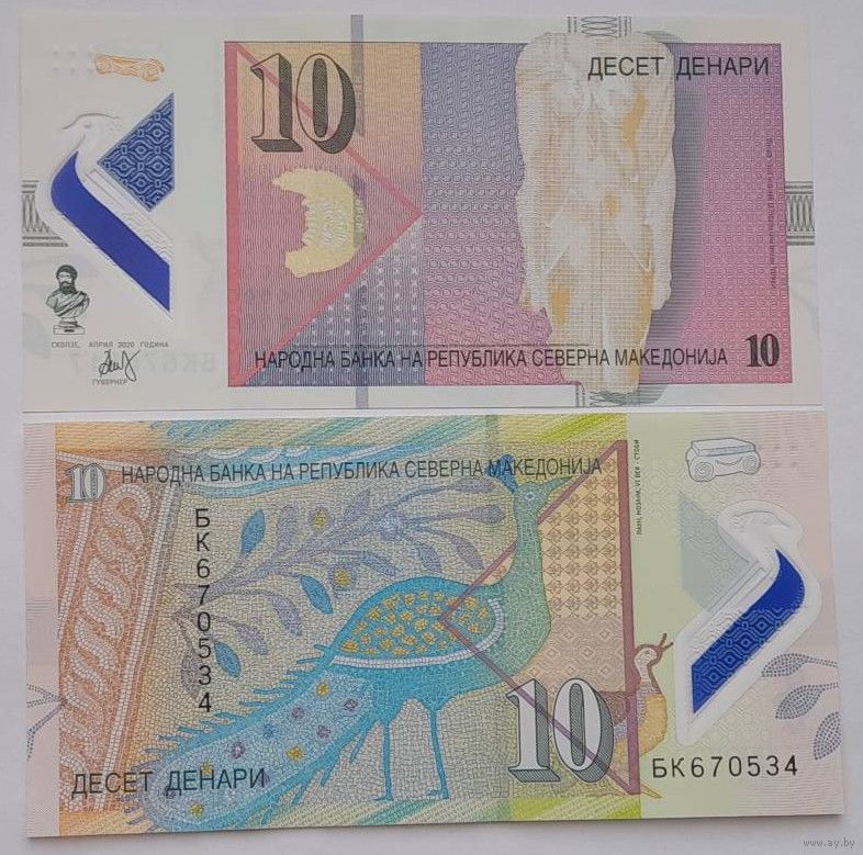 Северная Македония 10 динар 2020 года UNC (полимерная)