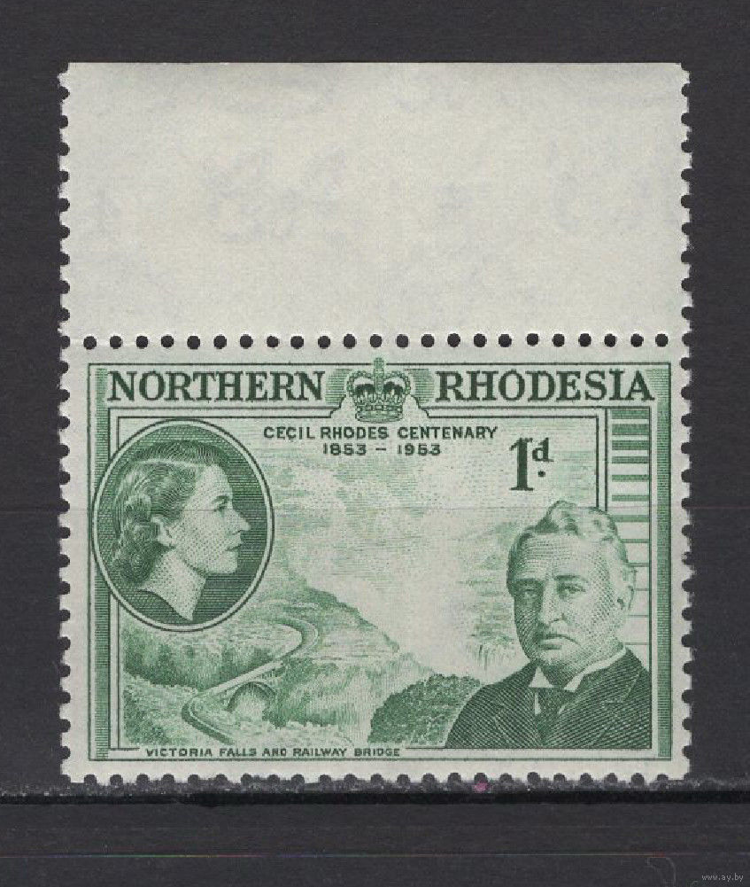 Северная Родезия /Northern Rhodesia 1953 mint** Сесил Джон Родс, Елизавета II, Водопад Виктория и ж/д мост SG#55