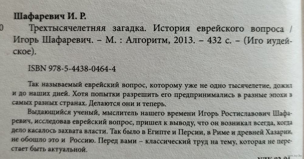 Шафаревич И. Трехтысячелетняя загадка. Тайная история еврейства.
