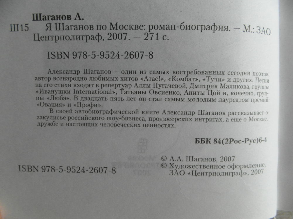 Александр Шаганов - российский поэт-песенник, автор слов ко многим известным эстрадным песням (таких групп, как «Любэ», «Иванушек», Дмитрия Маликова, Сергея Чумакова, «Черного кофе» («Владимирская Русь») и многих других. В сборник входит автобиографический роман-биография «Я Шаганов по Москве» и избранные стихотворения поэта. Книга написана очень легким слогом, увлекательно описаны творческие вехи поэта, ярко описаны встречи с коллегами, музыкантами и композиторами, с представителями современного российского шоу-бизнеса. С архивными фотоиллюстрациями.