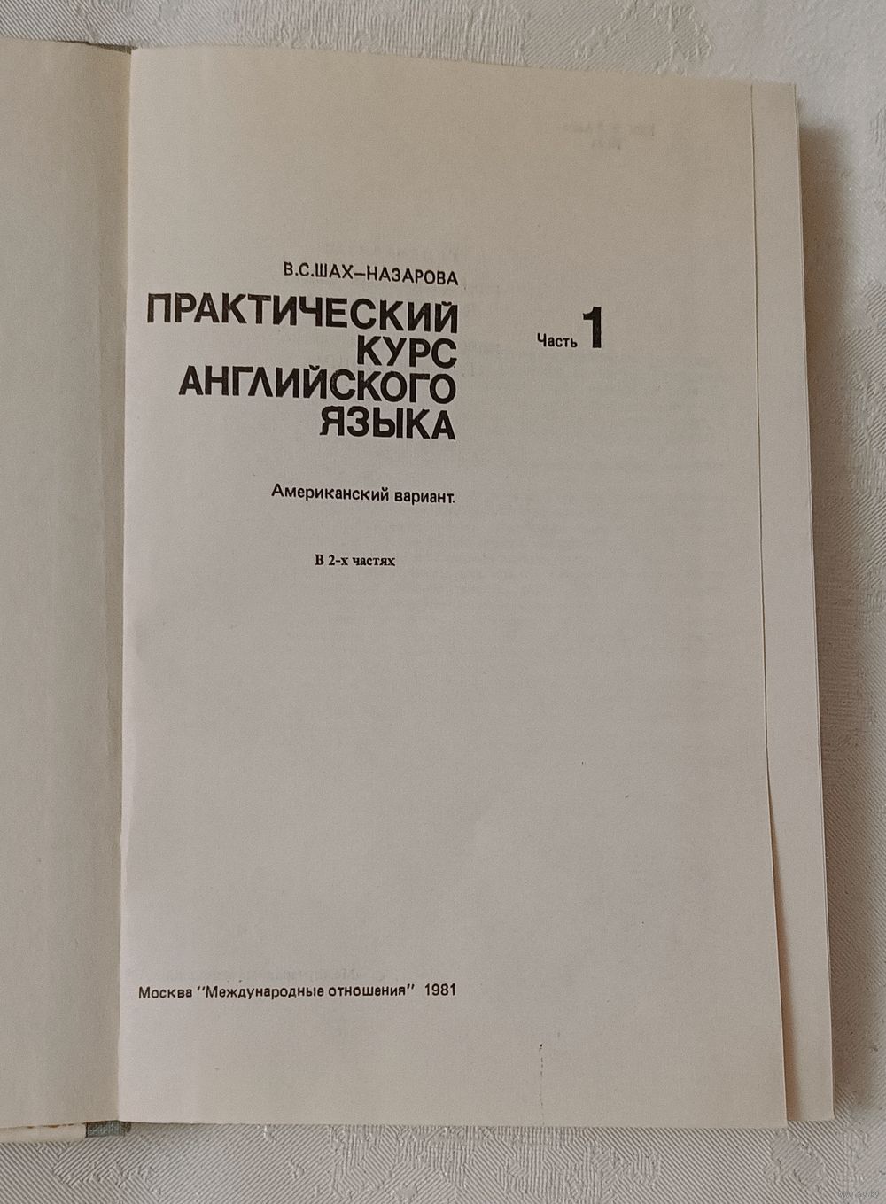 Шах-Назарова В. С. Практический курс английского языка: Американский вариант. В 2-х частях. Ч. 1. - Introduction into Modern American. Part 1. -М.: Междунар. отношения, 1981. — 288 с., твёрдый переплёт, обычный формат.