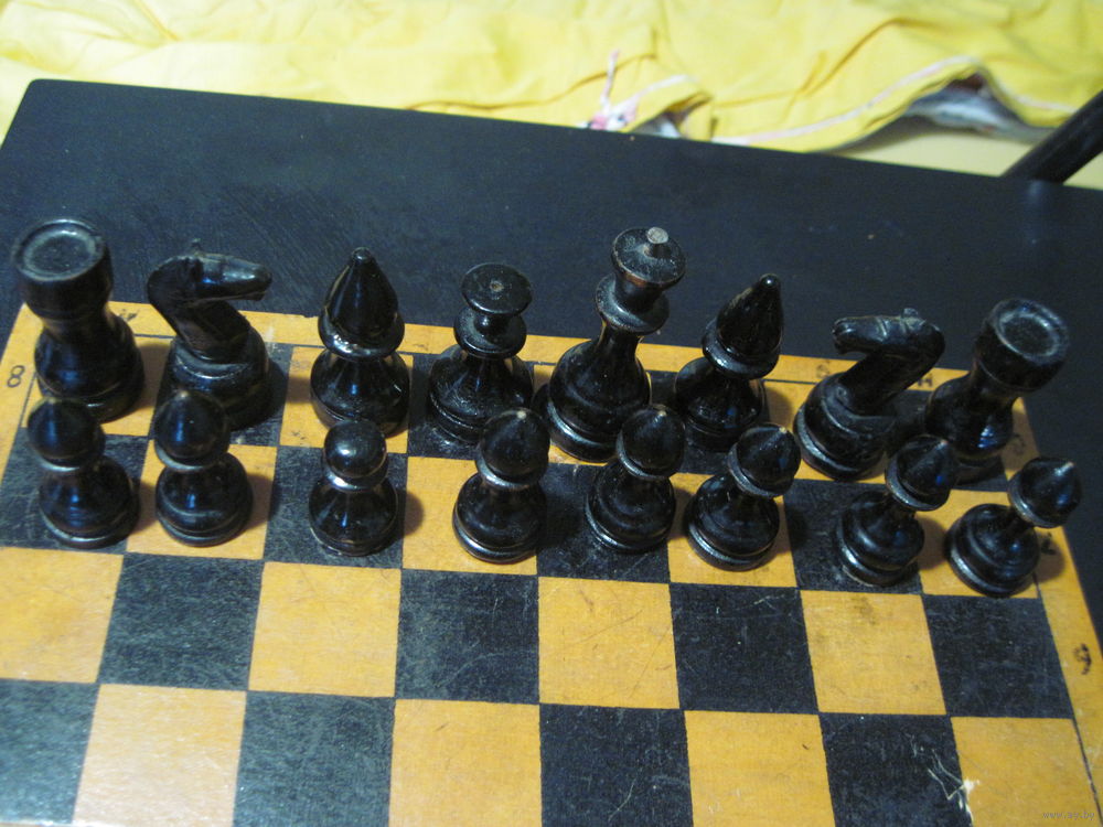 | Доска 29х29 см. Нет родной ладьи(туры), вместо нее пешка из другого набора. | |