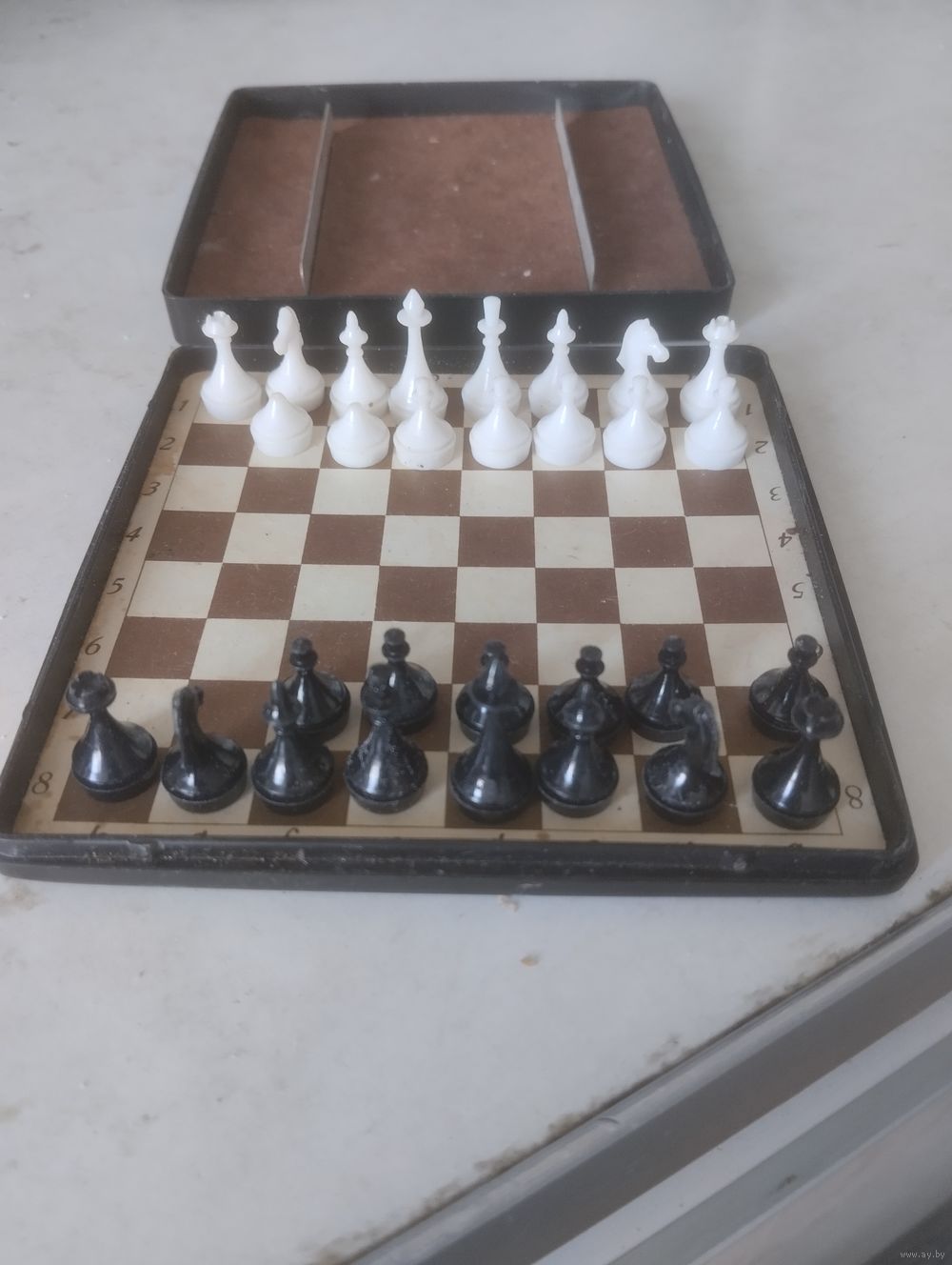 Не хватает 2 чёрных пешек и 2 белые пешки сломаны и одной нет.
