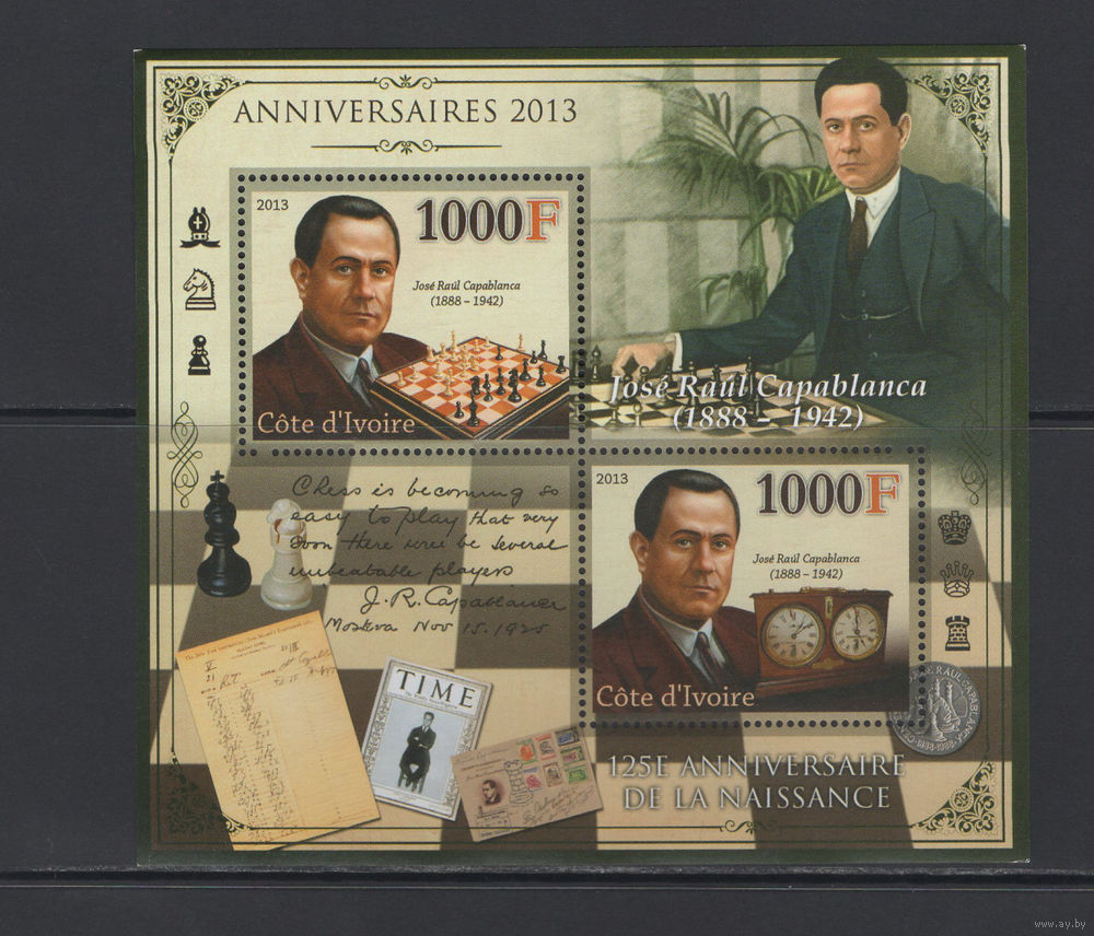 Шахматы Кот-д'Ивуар 2013** Легенды Кубинский шахматист, 3-й чемпион мира Хосе Рауль Капабланка