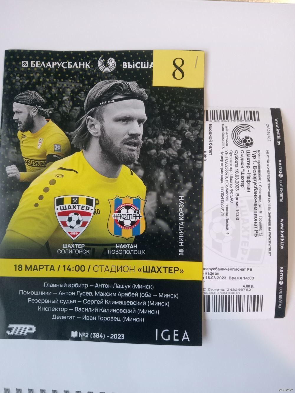 Шахтер (Солигорск) VS Нафтан (Новополоцк) +билет с матча, 18 марта 2023 года. Программа 2-(384). 1-й тур чемпионата РБ.