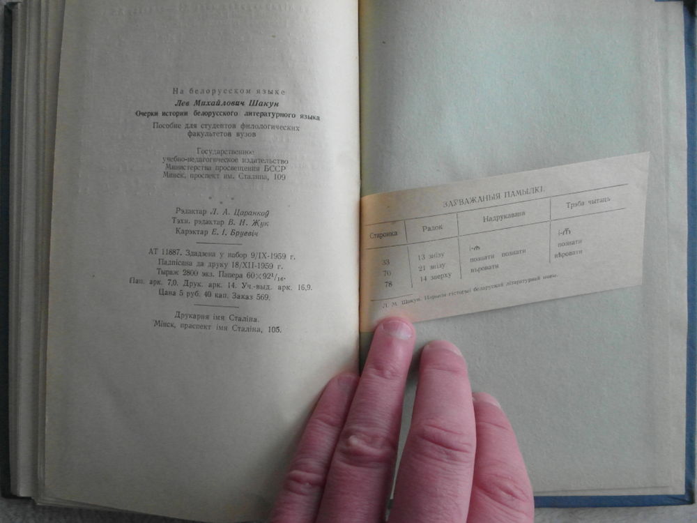 Нарысы гісторыі беларускай літаратурнай мовы: дапаможнік для філалагічных факультэтаў ВНУ / Л. М. Шакун. Мінск : Дзяржаўнае вучэбна-педагагічнае выдавецтва Міністэрства асветы БССР , 1960 г.