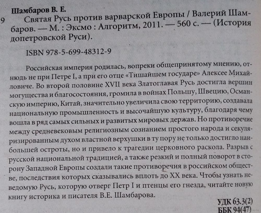 Шамбаров Валерий . Святая Русь против варварской Европы. История допетровской Руси. М. Эксмо. 2011 г. 560 с. Твердый переплет, Обычный формат.