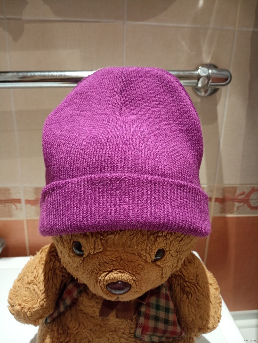 Фото 3. Сиреневая вязаная шапка. 5 рублей.