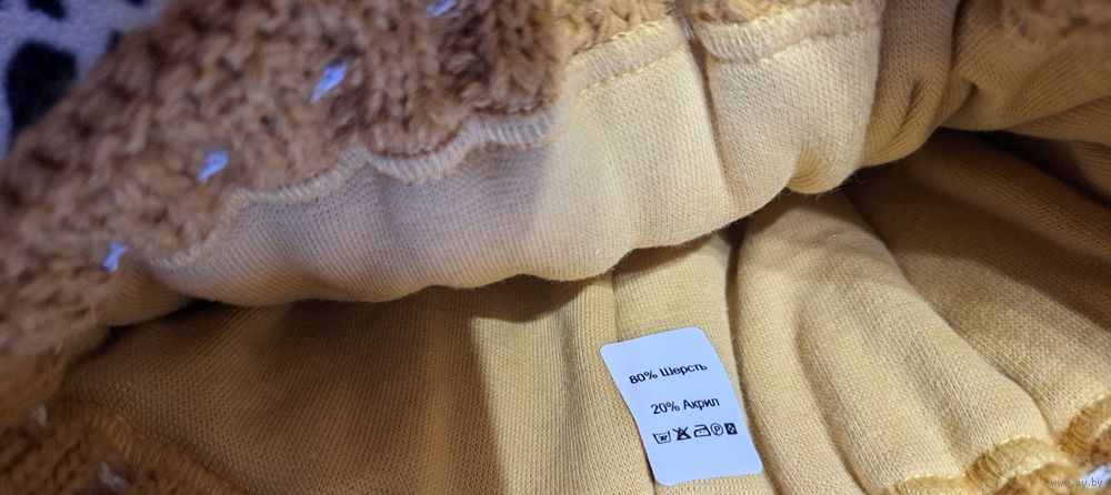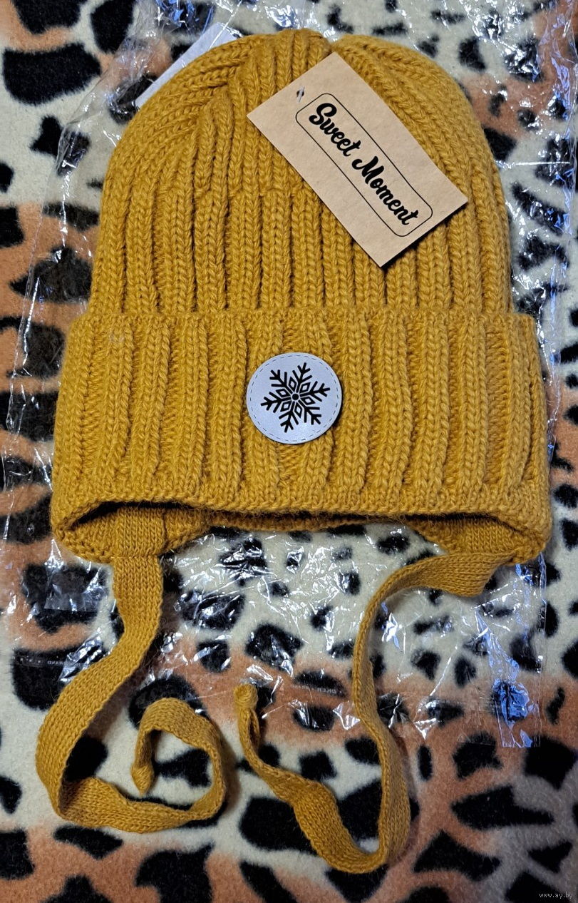 2)Шапка горчичная зимняя на 6-9лет, новая,размер 53-56, 80%-шерсть, 20%-акрил, Sweet Moment.