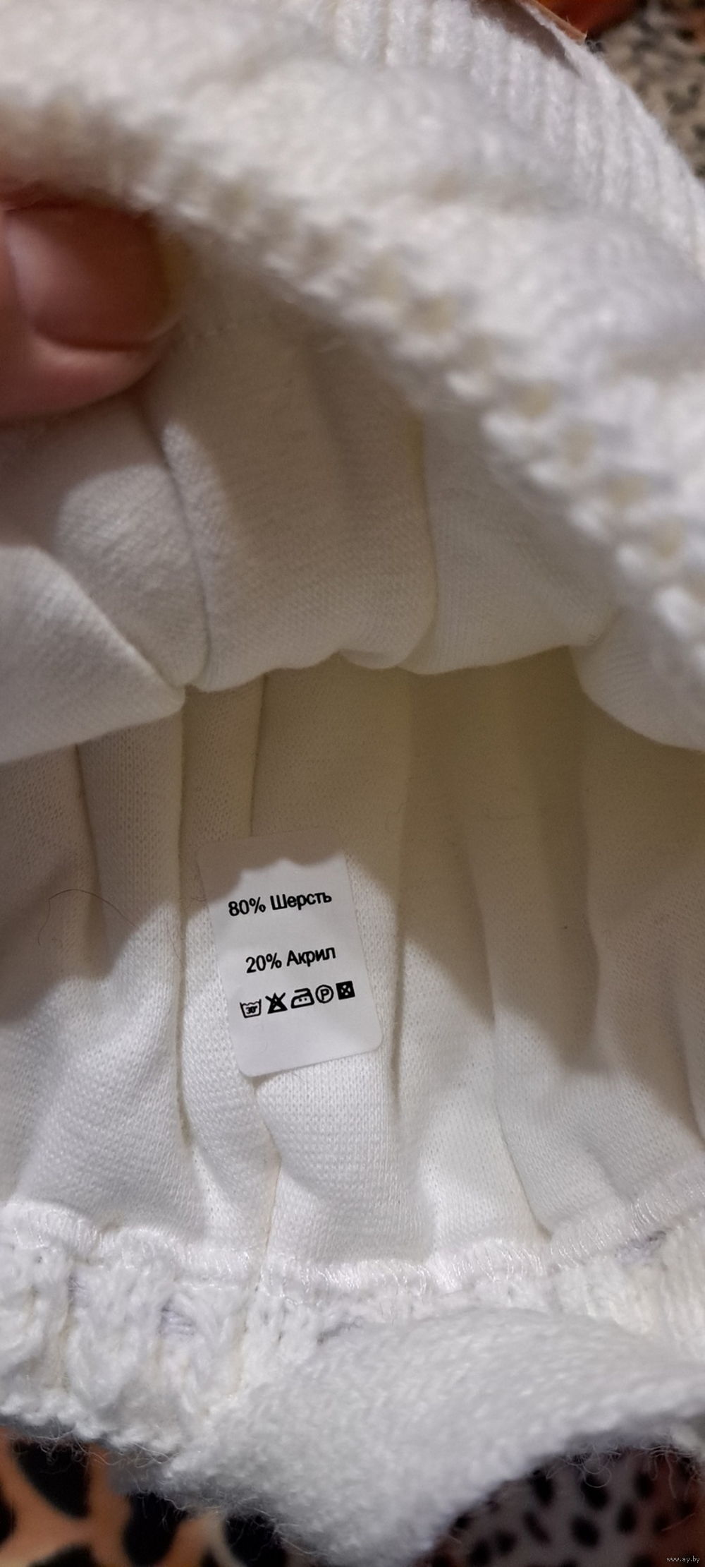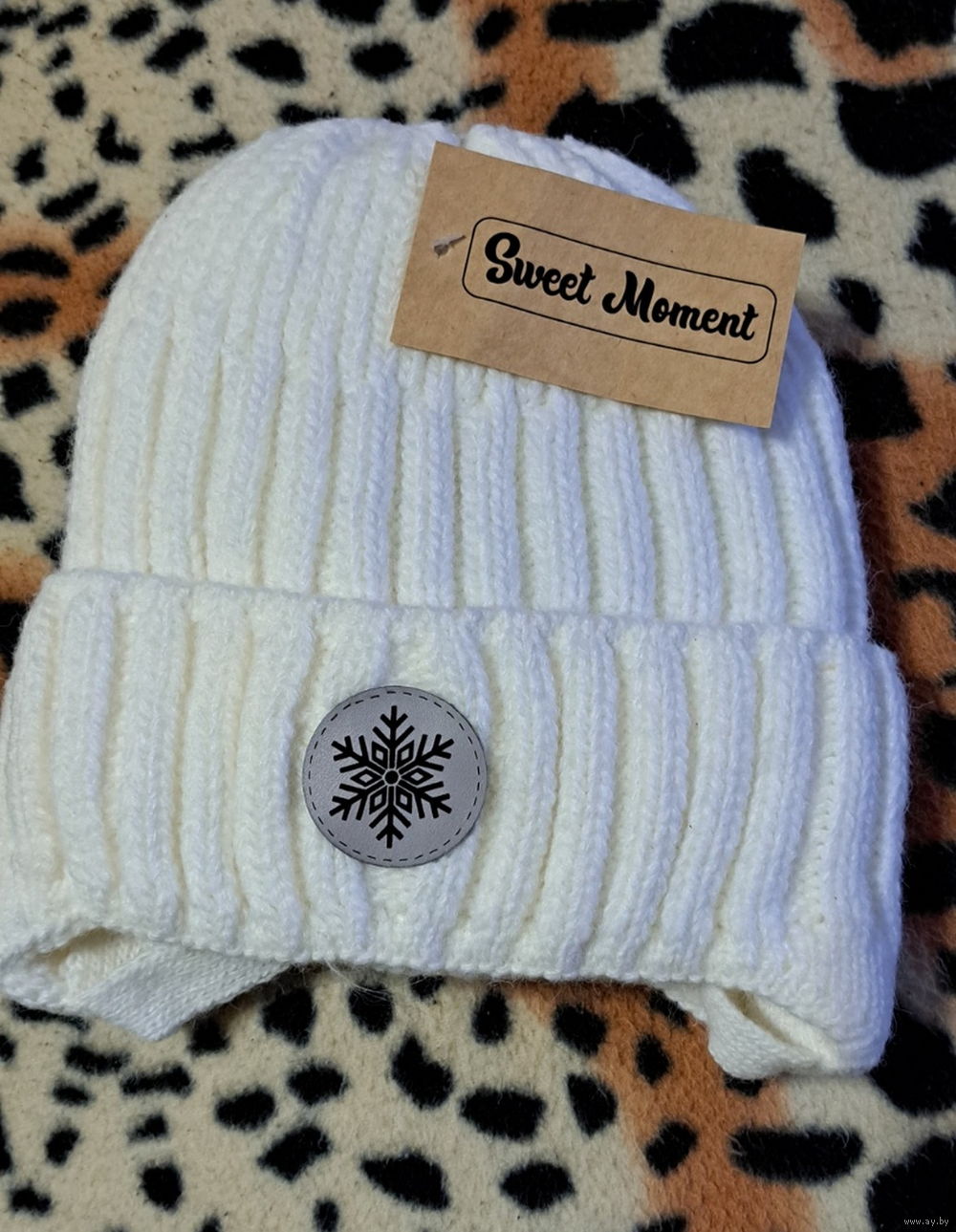 1)Шапка белая зимняя на 6-9лет, новая,размер 53-56, 80%-шерсть, 20%-акрил, Sweet Moment.