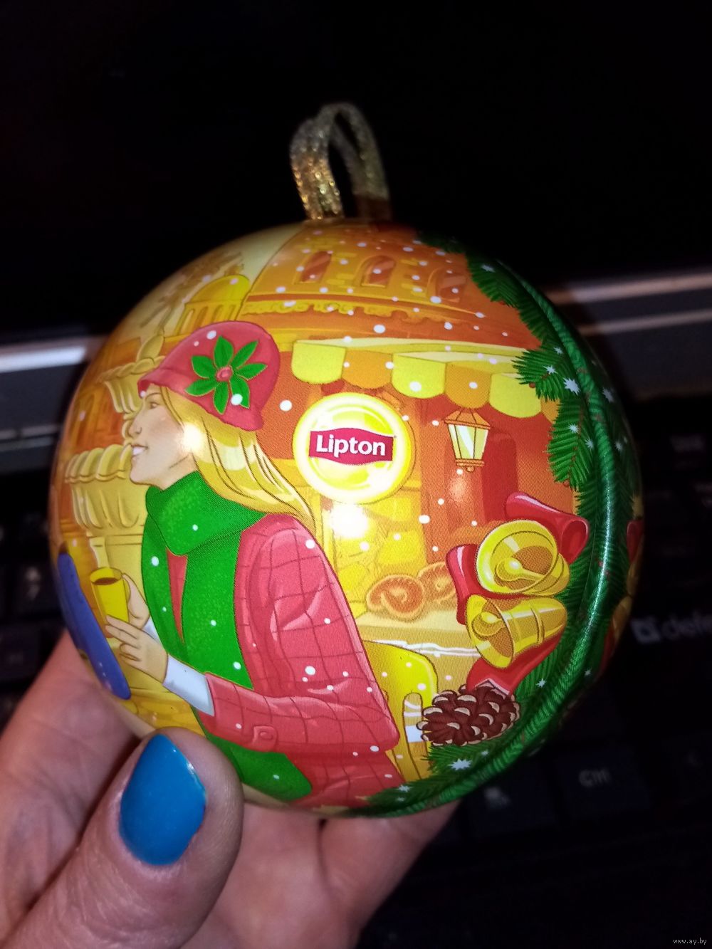 Шар Roma Lipton Tea ёлочный сувенирный 9 см жесть шкатулка Рим Липтон чай Новогодняя коллекция