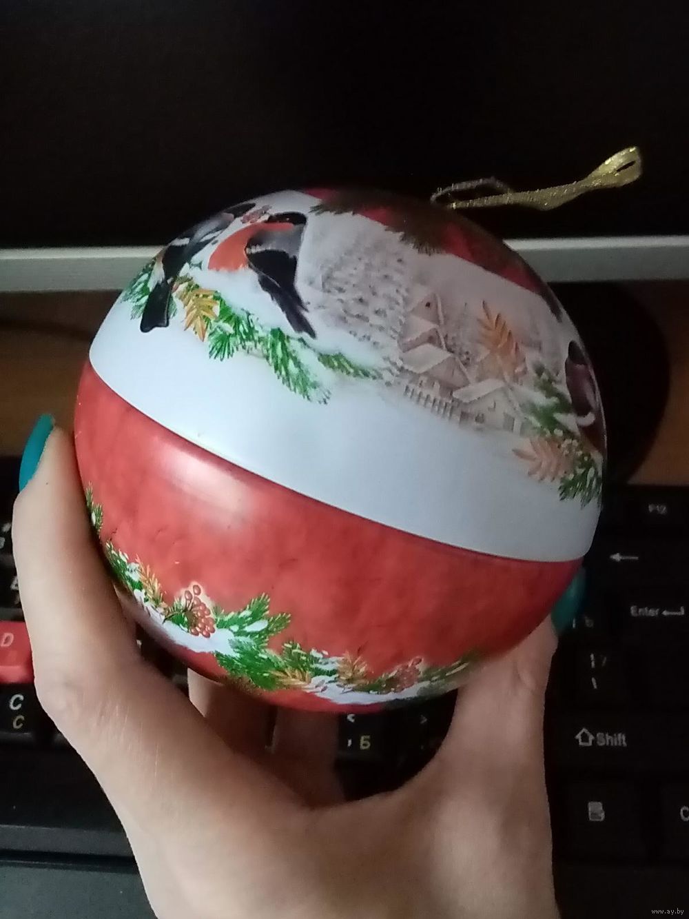 Шар Снегири ёлочный сувенирный 10,5 см жесть шкатулка Новогодняя коллекция