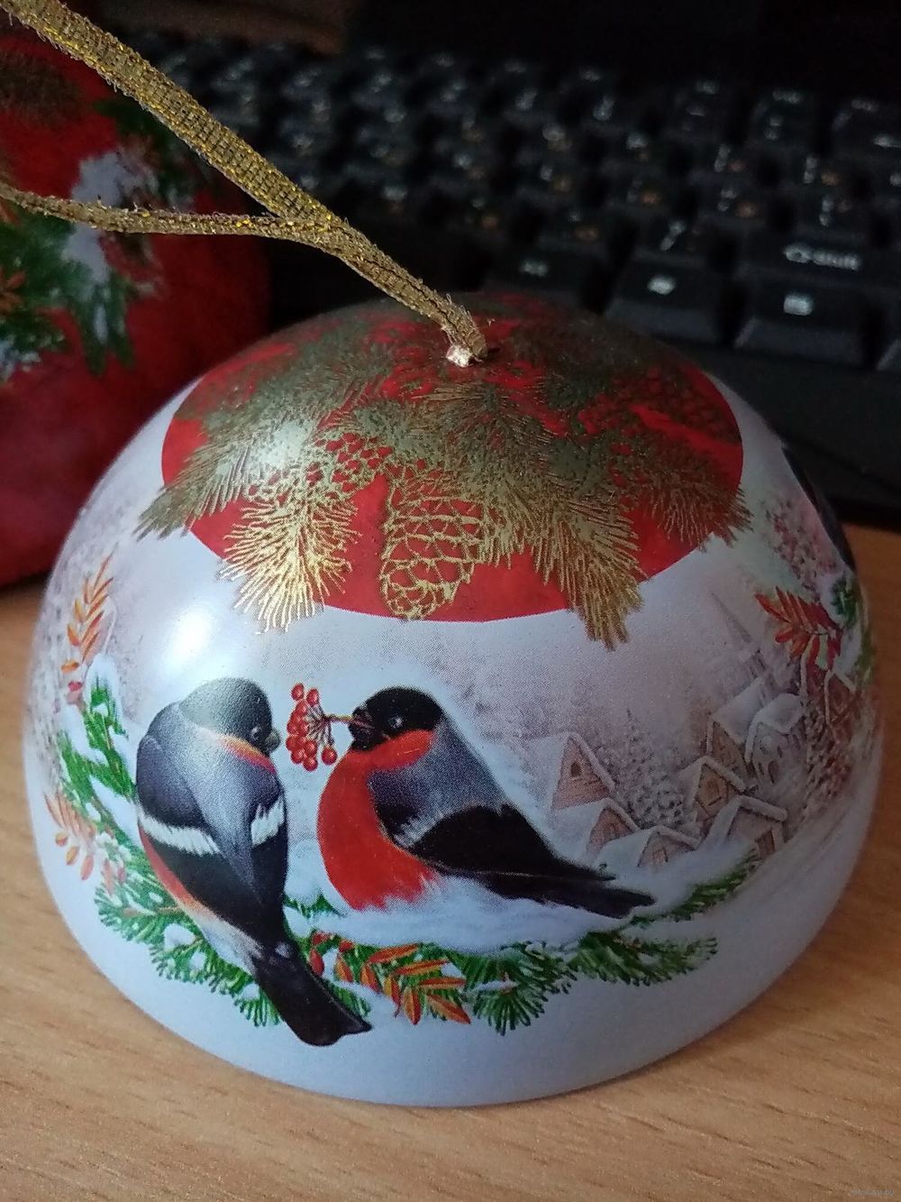 Шар Снегири ёлочный сувенирный 10,5 см жесть шкатулка Новогодняя коллекция