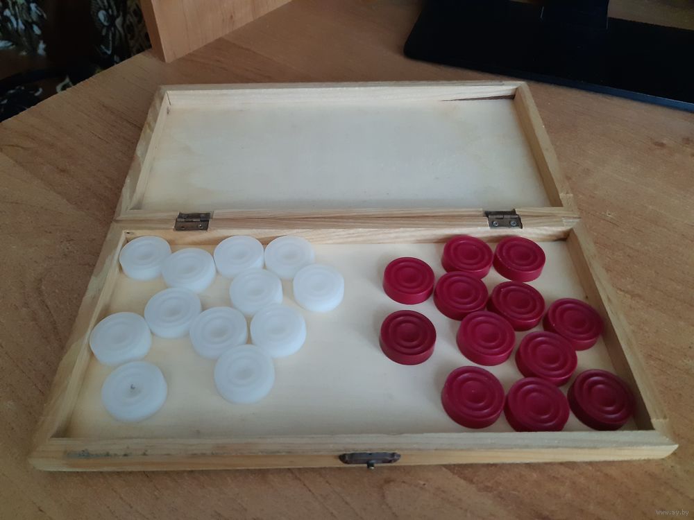 Продаю шашки с деревянной раскладной доской. Б/у, в хорошем состоянии. Доска деревянная, шашки пластмассовые. Размер доски 28,5×28,5 см. Отлично подойдёт как ребёнку, так и взрослому. Отправлю почтой в пределах Республики Беларусь. Без торга.