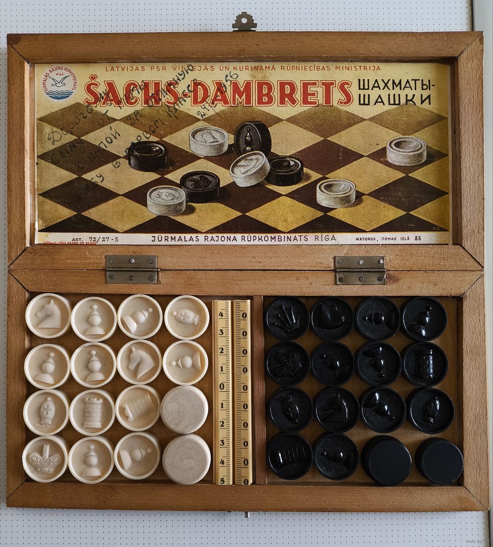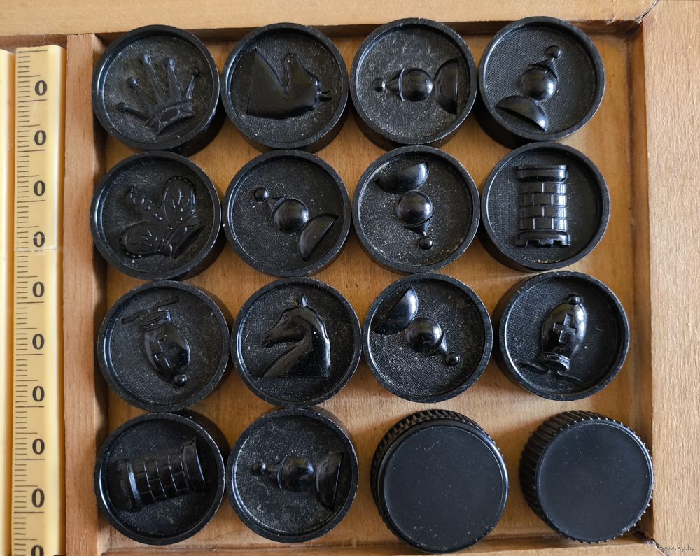 Внешний состояние на фото, не хватает двух белых и черных шашек, вместо них самодельные на фото видно.