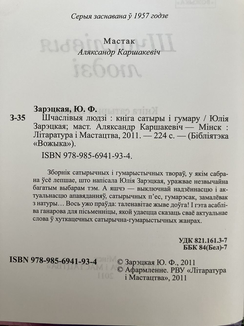 Шчаслівыя людзі. Зарэцкая Ю. Ф.