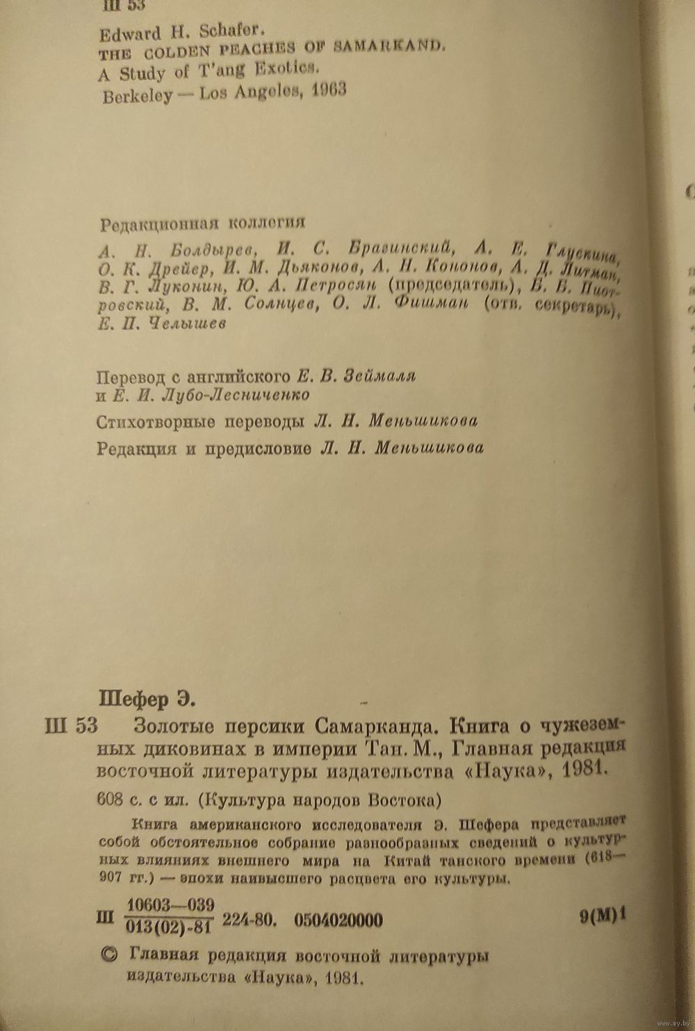 Шефер Э. "Золотые персики Самарканда. Книга о чужеземных диковинах в империи Тан"
