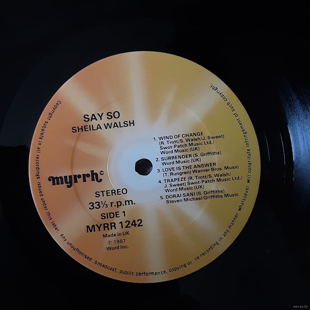 SHEILA WALSH - 1987 - SAY SO (UK) LP