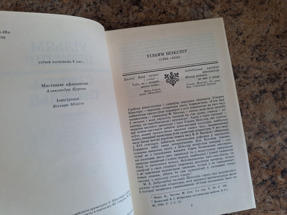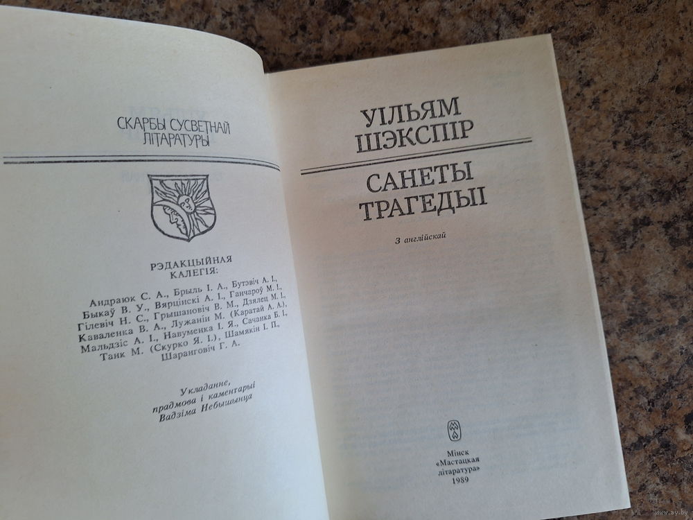 Шэкспір - КАК НОВАЯ Санеты, Трагедыі - Рамэо і Джульета, Гамлет, прынц дацкі, Кароль Лір - м. Мікіта - 1989 - на беларускай мове - Шекспир на белорусском языке - Ромео и Джульетта, Гамлет, Король Лир
