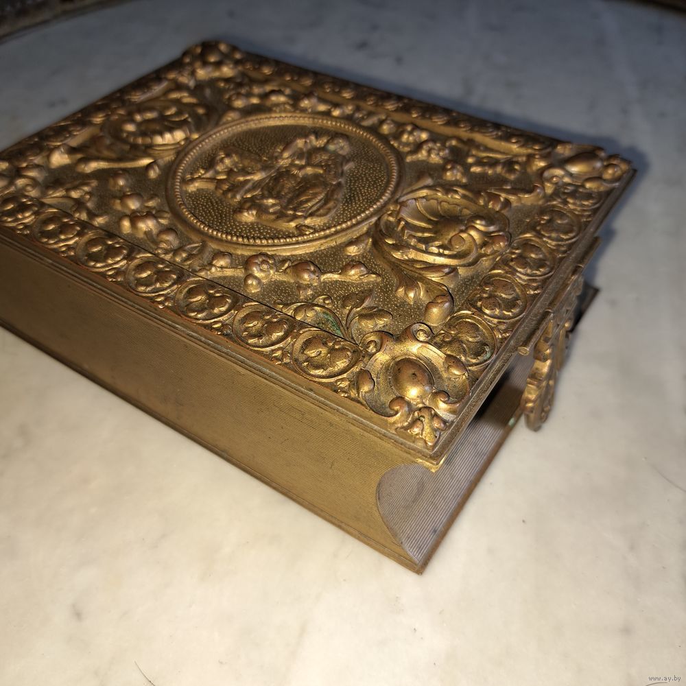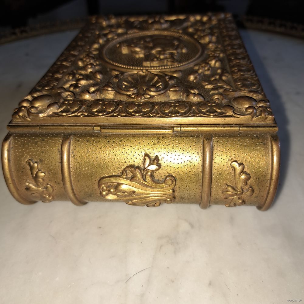 Очень красивая шкатулка книга. Старинная Франция, Париж. Клеймо. Бронза в позолоте. В отличном состоянии. Размер 20 на 13 на 6 см