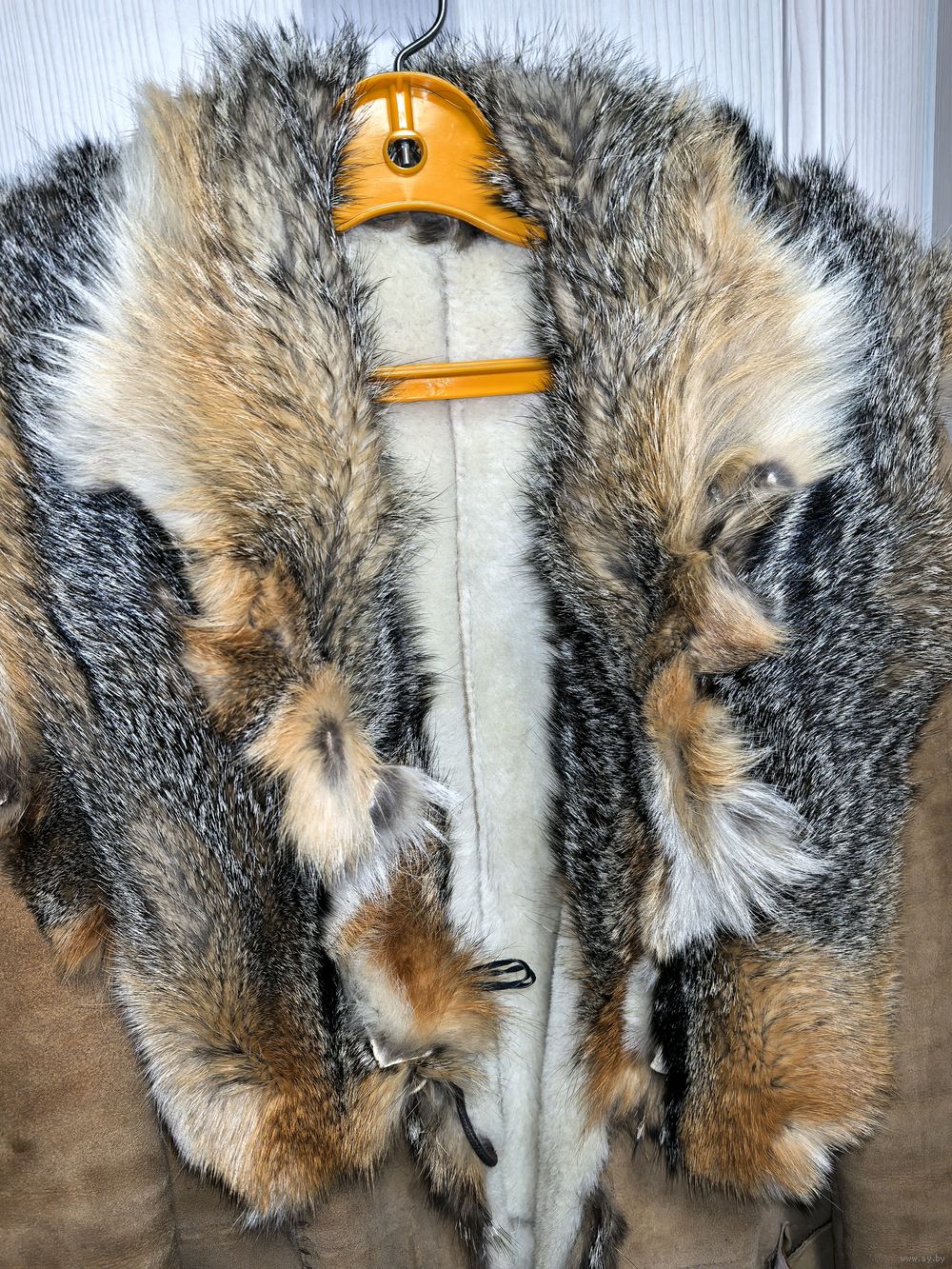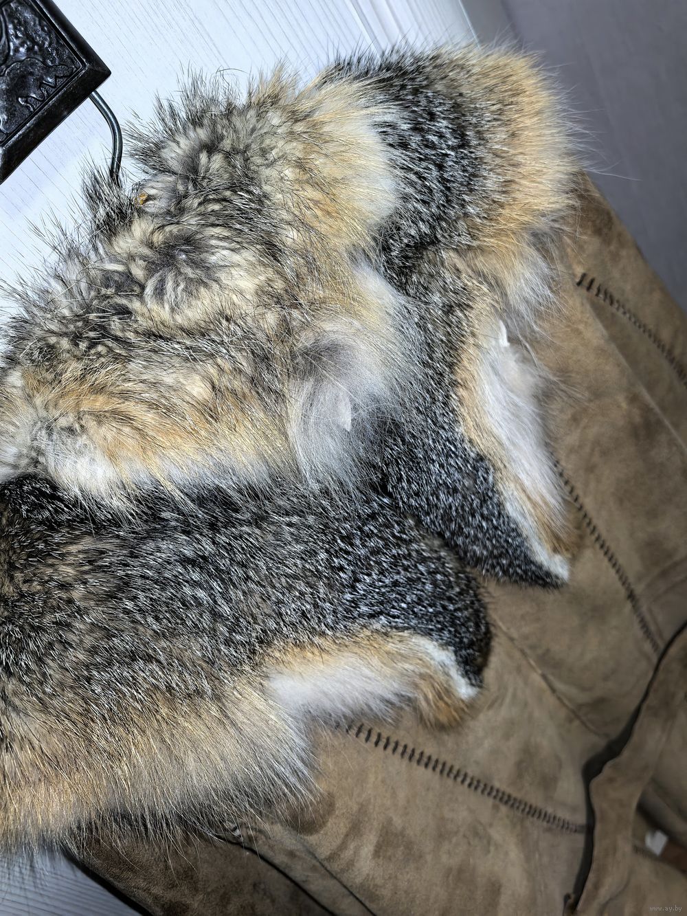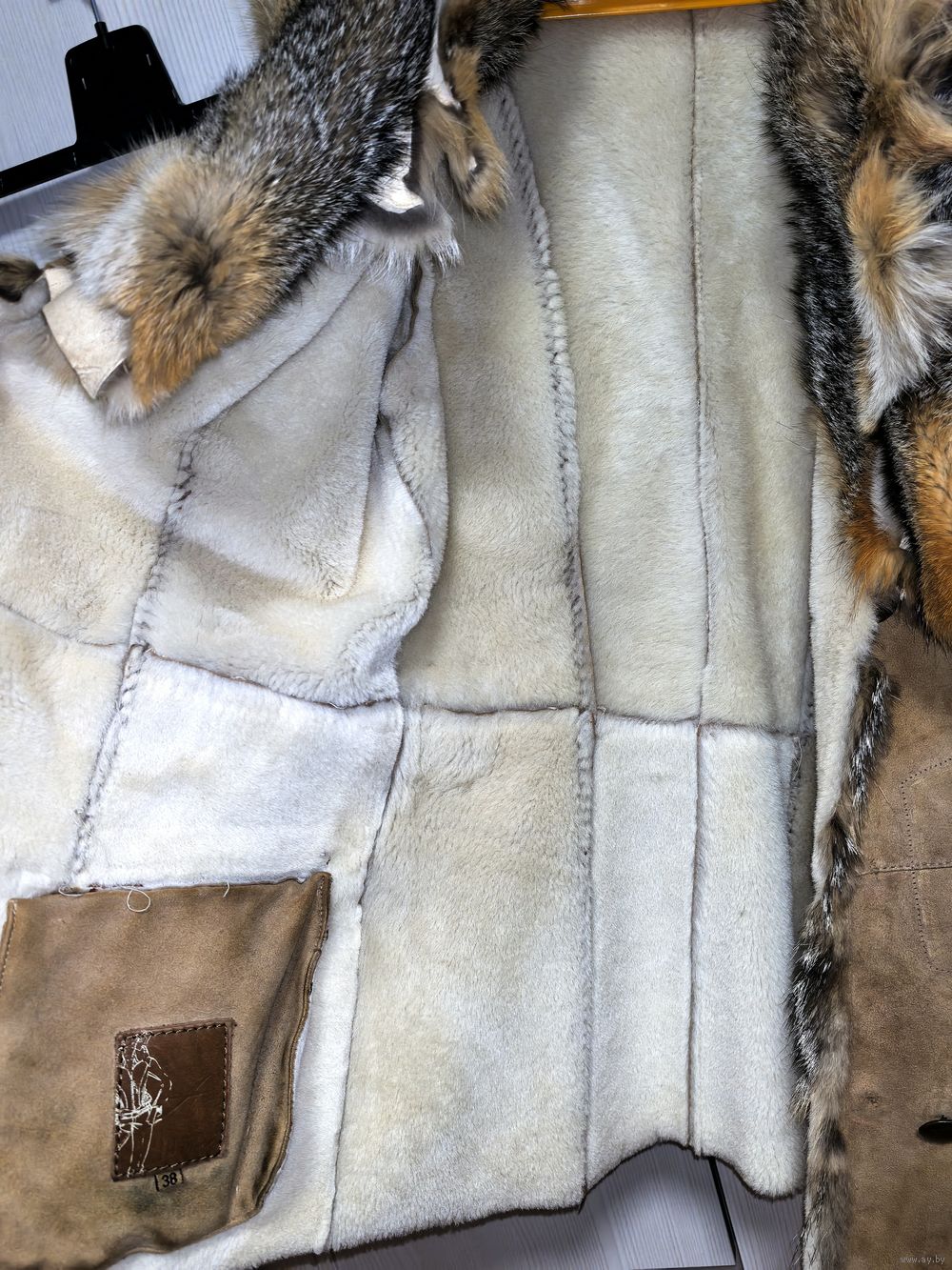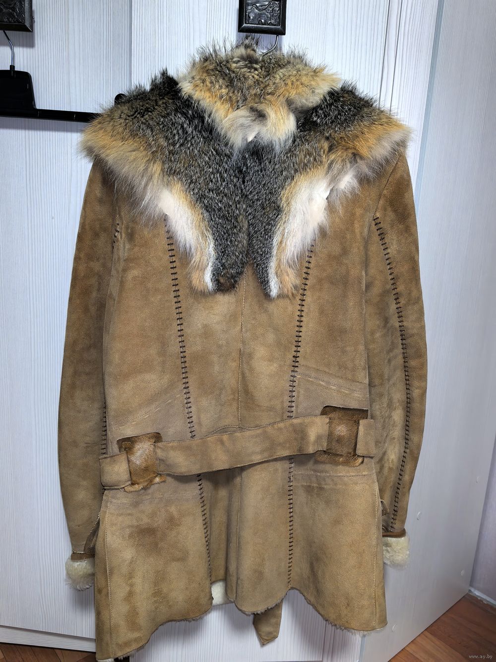 Дубленка в идеальном состоянии, кожа не затерта нигде, мех густой и чистый, ношена совсем немного. Износ есть только на ремешке, потому что он тоненький и мягкий - местами вытерты волоски, но в застёгнутом виде этого абсолютно не заметно.