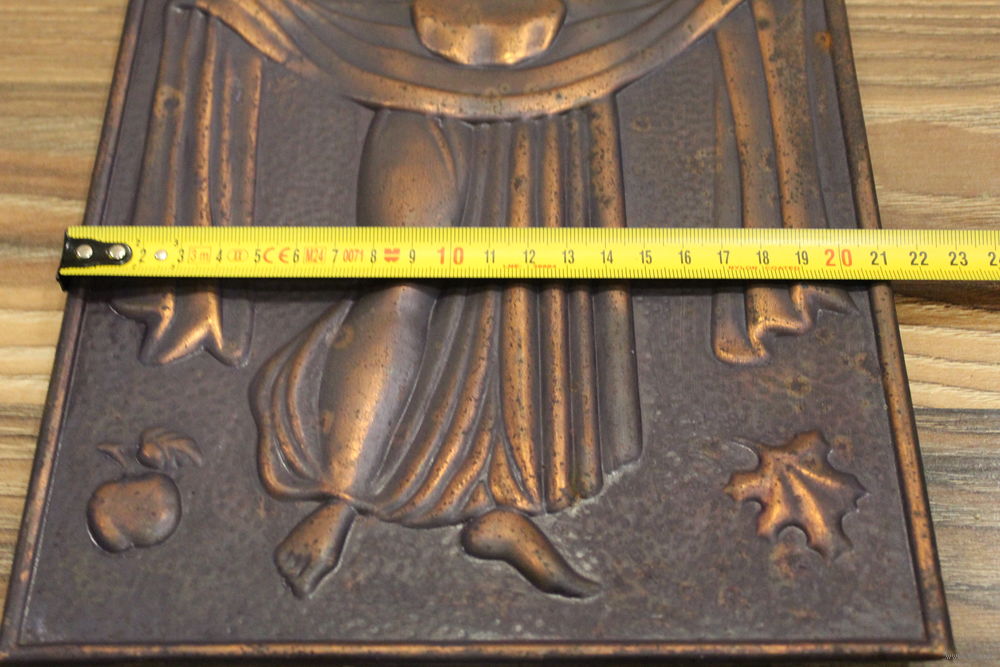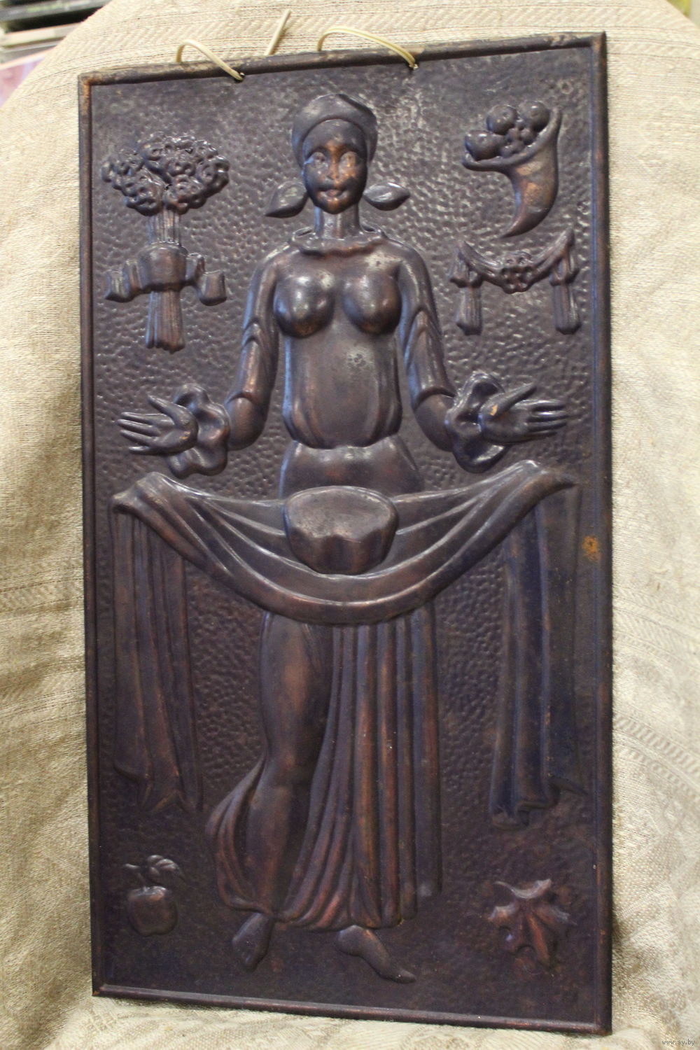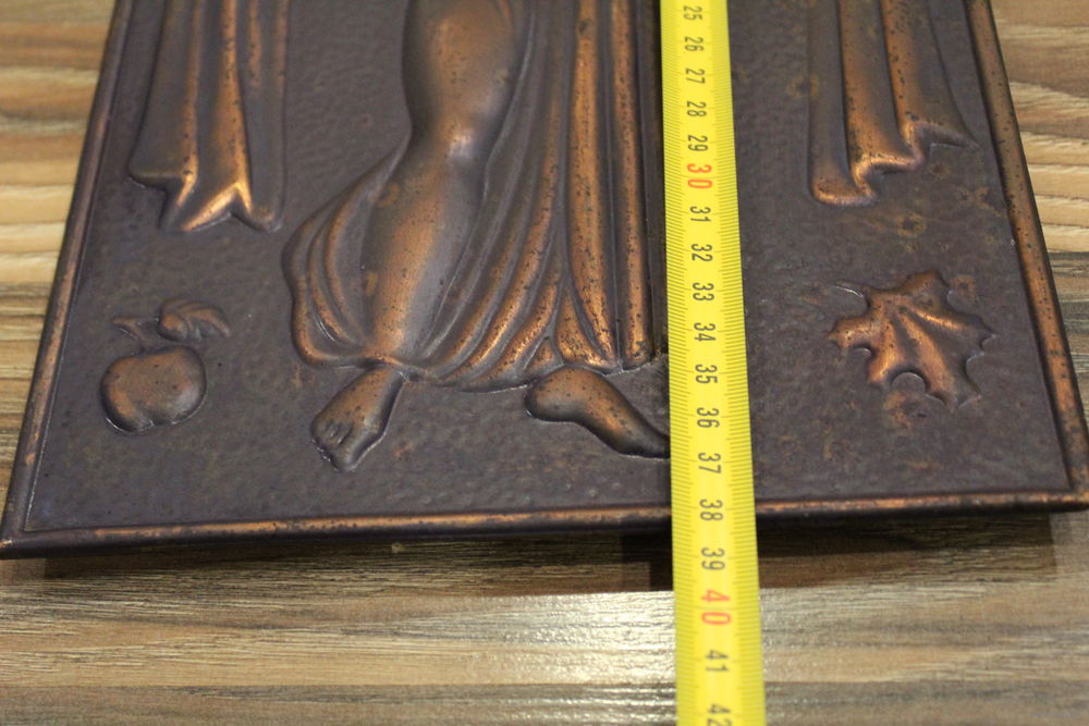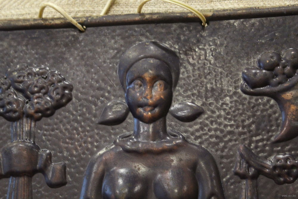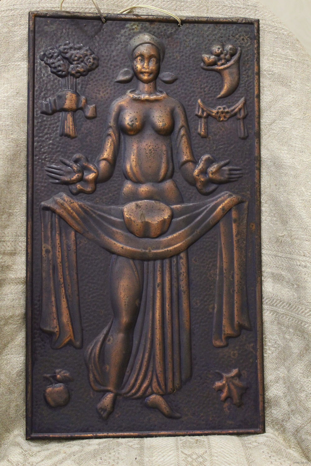 Шикарная медная чеканка "Девушка с караваем" Дары Осени