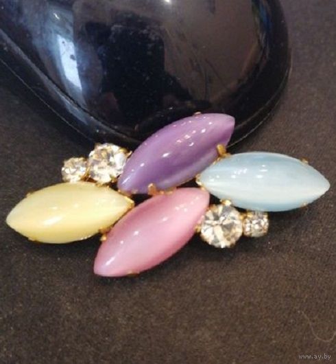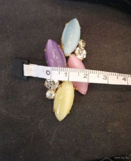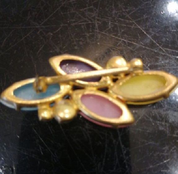 Шикарная ретро брошь прошлого века, состояние идеальное, дефектов нет. Размер 2*6см, камни натуральные (какие не подскажу, не разбираюсь) Мне брошь подарила свекровь на день рождения в 1980 году, сказала, что ей от мамы досталась.