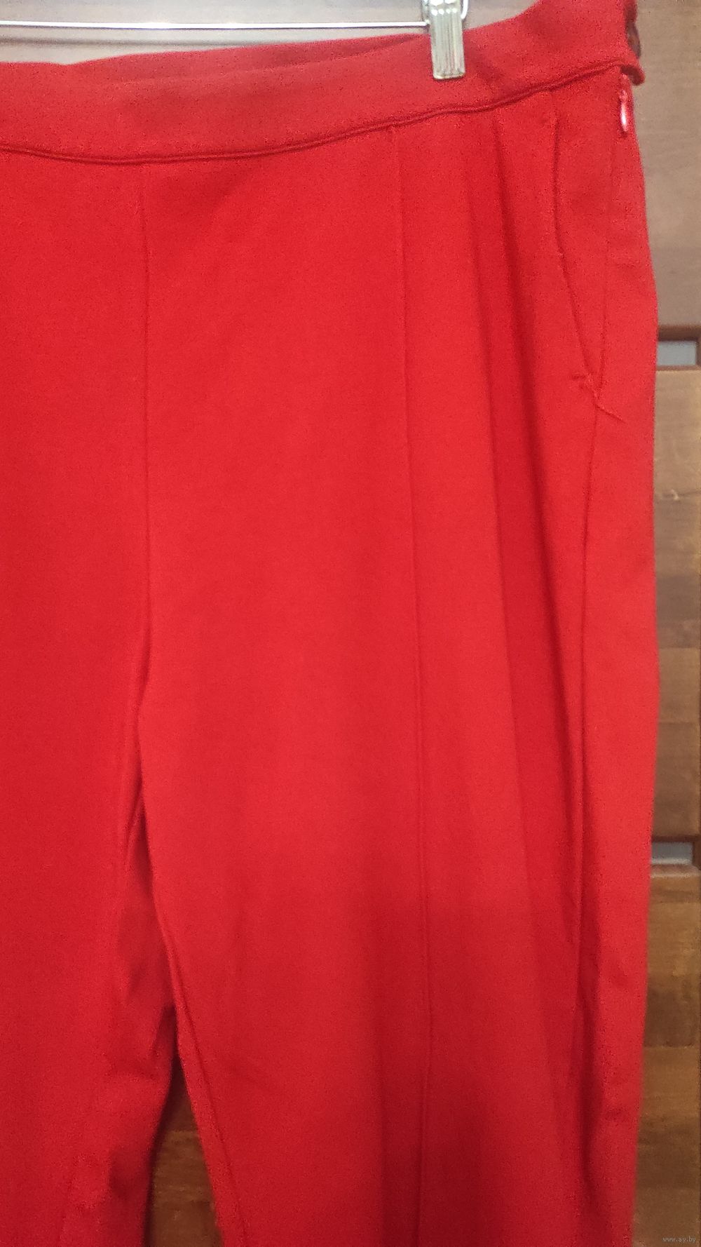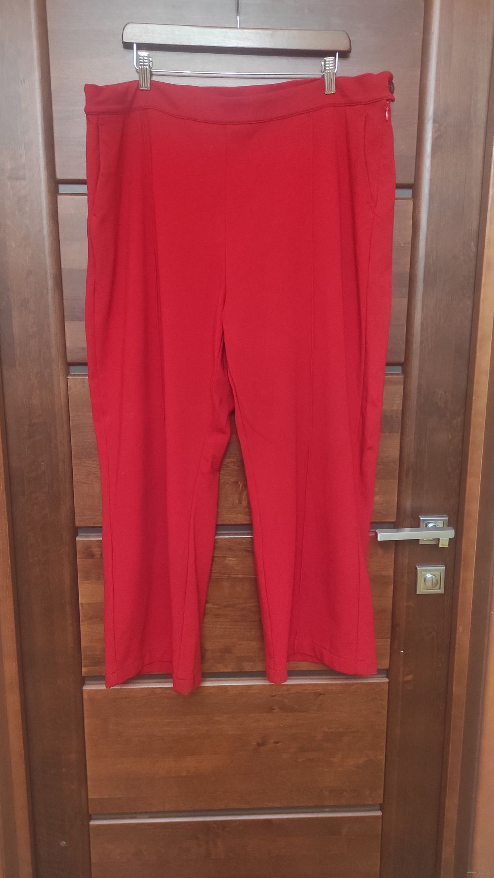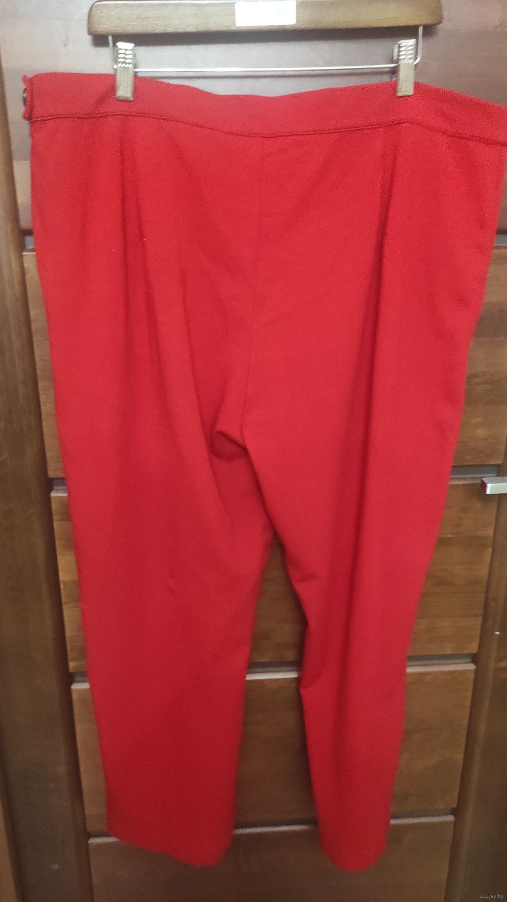 Шикарные брюки Marina Rinaldi на 64-66 размер. Насыщенной красный цвет, качественная ткань. Состав: 69% вискозы, 26% полиамида, 5% эластана. Длина 97 см, ПОталии 54 см + тянется, ПОбедер 66-74 см, ПОноги по верху 37-41 см, ПОпо низу 29 см. Идеально сидят на фигуре, одни словом Marina Rinaldi))). Приобретала в три раза дороже. Б/у недолго, стали велики.