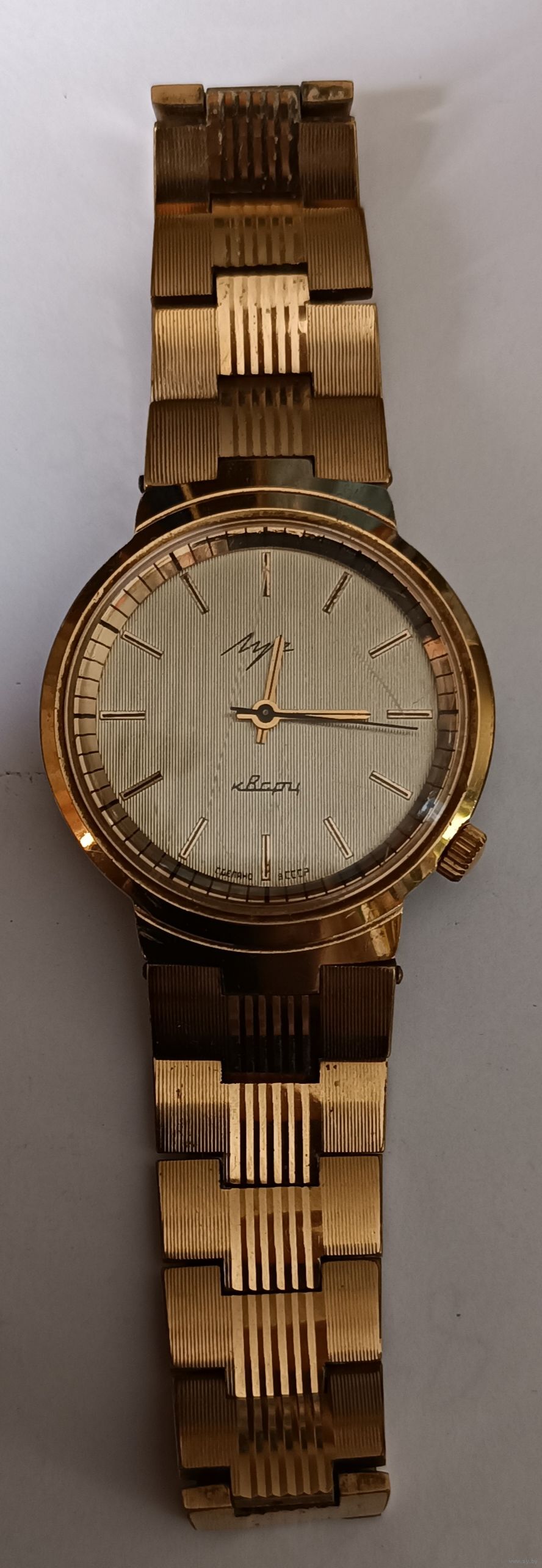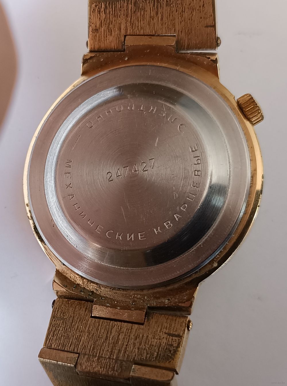 Оригиналы. Времён СССР. Смотрятся шикарно, позолоченный браслет, позолоченные часы с клеймом АУ. Рабочие или нет не знаю, нет батареек проверить, поэтому продаются как есть. Смотрите и другие мои лоты, есть много интересного. Доставку оплачивает покупатель при получении лота на Белпочте. Полная предоплата до отправки лота по почте. Смотрите и другие мои лоты, выставлено много интересных лотов с 1 рубля! Качественную упаковку гарантирую! Отправка Белпочтой. Выход на связь в течении трёх дней, выкуп лота в течении семи дней, далее черный список и отрицательный отзыв! Делайте обдуманно Ваши ставки, прежде чем покупать лот, хорошо подумайте, нужен ли он Вам! Ставки не отменяю! Купленный товар возврату не подлежит.Спасибо за проявленный интерес к данному лоту! Всем удачи в торгах! Подписывайтесь на мои лоты, постоянно выставляю много интересных лотов с 1 рубля!